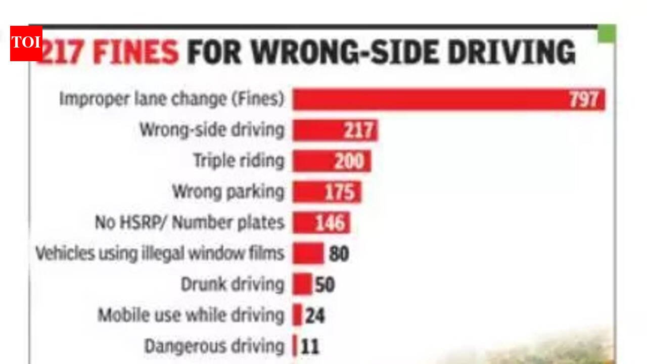 Gurgaon: A special pre-Holi enforcement drive saw 2,720 challans having been issued in a single day. Of them, 797 challans were issued during the March 2 crackdown, led by deputy commissioner of police Rajesh Mohan, for improper lane changes — the highest number of violations.The drive aimed to ensure road safety and smooth traffic flow ahead of the festival even as police announced the installation of 37 special nakas across the city, along with round-the-clock social media surveillance and a zero-tolerance warning against hate and provocative posts.Traffic police data showed 217 motorists were challaned for wrong-side driving, 200 for triple riding, 175 for wrong parking, and 146 for driving without number plates or high security registration plates (HSRP). Action was also taken against 80 vehicles with illegal black film, 50 cases of drunk driving, 24 for using mobile phones while driving, 11 for dangerous driving, seven for noise pollution and four for overspeeding.Police spokesperson Sandeep Turan said the special nakas installed across Gurgaon included nine each in West and East zones, five in South zone and 14 in Manesar zone. He said checkpoints will also be set up across the city for intensive vehicle checks and strict enforcement will continue against violators.Gurgaon police said a 24×7 monitoring mechanism was activated to track social media platforms. Any individual found posting hate speech or inflammatory content will face criminal proceedings, with officials underlining a zero-tolerance policy against attempts to disturb communal harmony during the festival.Deputy commissioner of police (East) Gaurav Rajpurohit on Tuesday chaired a security review meeting and directed all station house officers and police post in-charges to take firm action against criminals, anti-social elements, hooligans and those driving under the influence of intoxicants.Police said special security arrangements were made to maintain law and order during Holi celebrations. Other than nakas in various areas, additional force was deployed for patrolling in crowded and sensitive locations and adequate traffic personnel were stationed to ensure organised vehicular movement.“Sensitive areas have been identified and fortified with sufficient police presence. Deployment has also been ordered at public places such as malls, cinema halls, bus stands and railway stations. Officers have been instructed to act against motorcycle-borne miscreants indulging in rash riding and hooliganism,” Sandeep added.With theft and snatching gangs often becoming active during festive occasions, SHOs and chowki in-charges were directed to intensify patrolling in their respective areas.