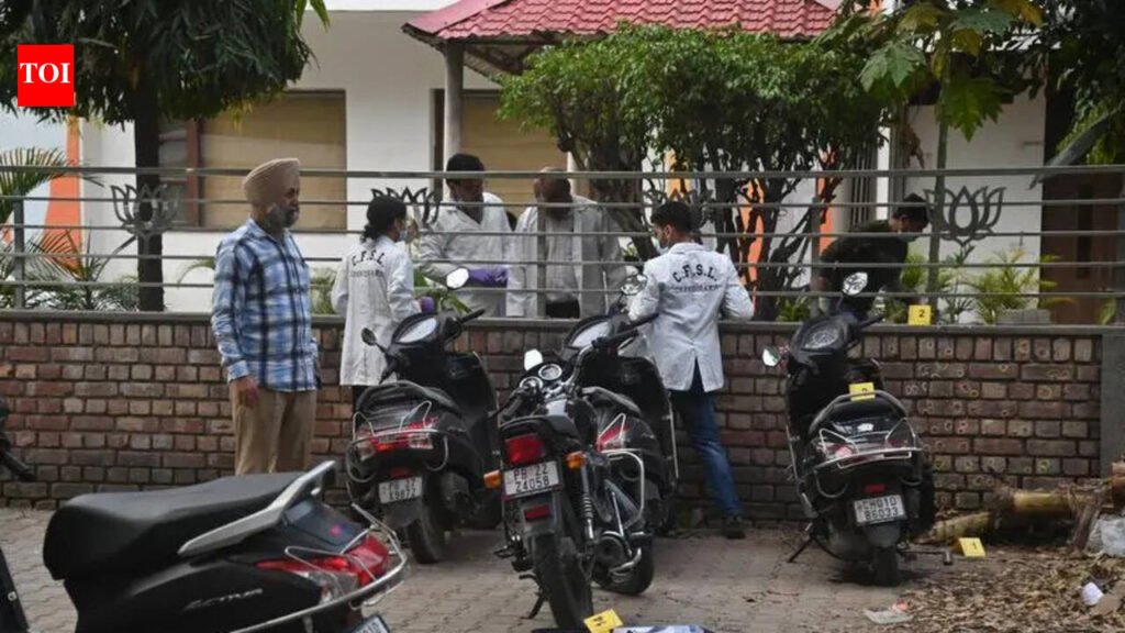 Chandigarh: Punjab Police on Thursday evening arrested two suspects for Wednesday’s grenade blast outside the Punjab BJP HQ in Chandigarh. They were identified as Aman Singh alias Bholu and Gurtej Singh of Rattangarh village in Rupnagar district.No other information on them was available at the time of filing this report. The separatist group Babbar Khalsa had claimed responsibility for the attack but police are yet to confirm it.Initial police investigation has revealed that the Chinese-made P-86 hand grenade used in the blast was smuggled from Pakistan via a drone. Police officers see this blast as part of a series of grenade attacks on police stations in Punjab.Chandigarh SSP Kanwardeep Kaur said multiple teams of crime branch, Operation Cell and District Crime Cell are working the case and raids were conducted in Punjab, Haryana and Himachal.The grenade was hurled from a distance of 25-30 feet and landed near the main gate of the BJP office. There’s a cabin for two CRPF sentries near the gate and more personnel were on duty nearby. Luckily, no one was injured.The spot where the grenade landed was where visitors often park vehicles. The splinters damaged a parked car and a scooter.After lobbing the grenade, the two suspects ran towards Sector 24 road, where they had parked a scooter and sped away, say police. The boundary wall of the BJP office is just 3 feet high with a 2-ft-high grill on top.Police suspect the attackers arrived from Sector 36. After parking their scooter, they approached the BJP office on foot. There’s footage of them waiting for the precise time to attack. As seen in a self-filmed video, one of them pulled the pin and lobbed the grenade. A blast was heard as the two ran away.After crossing the road between Sectors 37 and 24, they were seen sprinting towards the VIP area, where several judges reside. After this, they are suspected to have gone from Sector 37-38 road to Mohali via New Chandigarh.