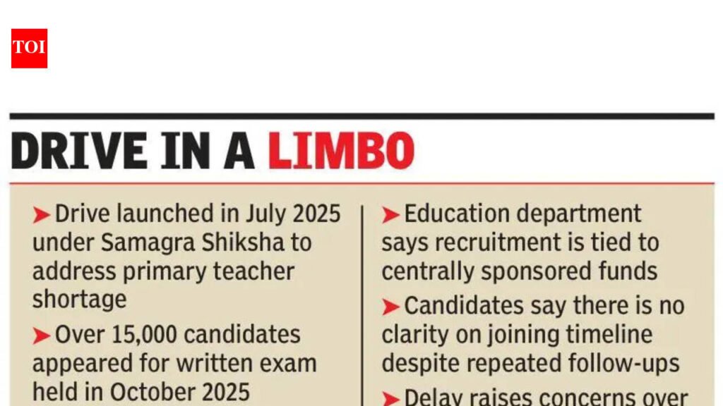 Chandigarh: Months after clearing all stages of the recruitment process, candidates shortlisted for 218 junior basic teacher (JBT) posts in government primary schools are still awaiting appointment, with the process now delayed due to budget constraints.The Chandigarh education department initiated the recruitment drive in July 2025 under the Samagra Shiksha scheme to fill 218 JBT posts aimed at addressing teacher shortages at the primary level. The posts were offered on a fixed monthly remuneration basis. The written examination for the posts was conducted in October 2025 and witnessed a heavy response, with over 15,000 candidates appearing for just 218 vacancies. Following declaration of results, shortlisted candidates were called for document verification, which was completed in January this year.However, despite the completion of all formalities nearly three months ago, appointment letters have not been issued so far, leaving selected candidates in a quandary. Candidates said they have been repeatedly approaching the education department for updates but have not received any clear timeline regarding joining. Many said they had been expecting appointments soon after the verification process was completed.Officials indicated that since the recruitment is tied to centrally sponsored funding under Samagra Shiksha, the administration cannot proceed with appointments until funds are approved again in the new financial cycle.The delay has also raised concerns regarding staffing in government primary schools, where recruitment was expected to help improve the pupil-teacher ratio and ease existing shortages. The recruitment process, which began last year, was initially expected to conclude within a few months. With document verification already completed in January, candidates anticipated that appointment letters would follow shortly. However, with the financial year ending and funds lapsing, the process has now been pushed forward without a definite timeline.Officials said the department will move ahead with issuing appointment letters once the required approvals are received in the upcoming Project Approval Board meeting. Until then, the selected candidates continue to wait for clarity on their appointments.BOX- DSE on delay in appointmentsDirector school education Nitish Singla said the appointment process for 218 JBT posts is pending due to financial constraints. “The budget has lapsed. We are awaiting fresh approval in the upcoming Project Approval Board meeting under Samagra Shiksha. Once cleared, appointments will be issued,” he said.