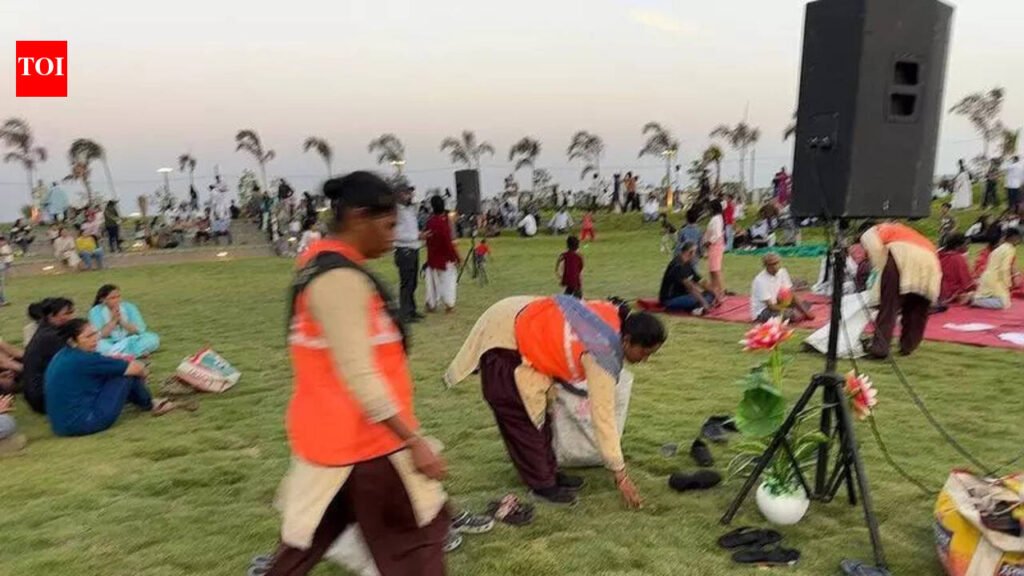 Surat: Health and sanitation teams of the Surat Municipal Corporation (SMC), along with volunteers from NGOs, collected around 300kg of litter from the Dumas Sea Face on Sunday evening, after the site got droves of visitors on the weekend.Civic officials said the litter was generated during the two-day weekend as thousands of visitors came to the newly developed beachfront. Sanitation teams cleared the litter within hours after the visitors left.Officials estimate more than 30,000 people visited the Sea Face over the weekend. Dumas has long been a popular picnic spot and the newly opened beachfront section has drawn even larger crowds, with many picnickers visiting. While many visitors used dustbins after having their food on the lawn, the large crowd overwhelmed the available bins. As a result, plastic bags, cups, pouches and disposable plates were seen scattered across many places.To spread awareness about cleanliness, the SMC deployed 15 supervisors and around 80 volunteers from NGOs including Shantadevi Charitable Trust, Chiranjivi Foundation and Surbin Trust. Volunteers formed groups to urge visitors not to litter and used loudspeakers to spread awareness messages.“Despite these awareness efforts, litter was left in the open at several places. Our teams carried out a swift clean-up and most of the waste was removed on Sunday night, while the rest of the cleaning was completed on Monday morning,” an SMC official said.