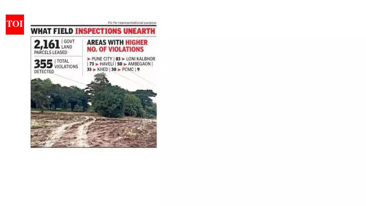 Pune: Pune city and Haveli taluka recorded the highest number of violations involving govt land leased on a long-term basis, prompting the district administration to issue notices to defaulting institutions, officials said on Wednesday.Land lease violations include non-renewal of leases, use of land for purposes other than those permitted, occupation beyond the sanctioned area, unauthorised constructions, sub-letting for rental income, failure to utilise land within stipulated timelines, and deviations from approved plans. A district-wide survey, launched last year, covered all 2,161 govt land parcels leased across Pune district. Field inspections were completed in all cases, with officials detecting 355 violations. Of the notices issued so far, the maximum number of breaches was found in Pune city and Haveli taluka, officials told TOI.Officials said the drive gained momentum after irregularities surfaced in the Mundhwa and Tathwade cases, leading to a wider verification of govt land records across the district. Pune collector Jitendra Dudi told TOI: “During routine class-II review meetings held in Sept and Oct last year, I directed officials to conduct a comprehensive survey. Field inspections were carried out for all leased lands and 355 violations were identified. Notices were served to all parties concerned and some already submitted their replies.” He said action would be taken strictly in accordance with govt regulations. “There are three possible courses of action. If a violation is eligible for regularisation, the party concerned will have to pay charges as per the applicable govt resolution. If the land was not used for the purpose for which it was allotted, or if the extension period expired, proceedings to resume the land would be initiated. Hearings will be conducted after notices, following which appropriate action will be taken. These violations continued for several years, with Pune city and Haveli accounting for the maximum number of cases,” Dudi said. The Mundhwa controversy surfaced in Nov 2025 and involved alleged manipulation of records related to a nearly 40-acre govt-owned Mahar Watan land parcel leased to the Botanical Survey of India. In a separate case, the Maharashtra animal husbandry department in Nov filed a police complaint against 26 people, including the acting joint sub-registrar (class II), Haveli-17, over the alleged illegal sale of a 6.32-hectare govt plot in Tathwade near Wakad. The land, valued at nearly Rs 750 crore, was allegedly sold through a private transaction for Rs 33 crore, despite being classified as non-transferable govt property requiring prior state approval. Following these cases, the district collector ordered verification of govt land records across all talukas. In the first phase of scrutiny, 355 violations were detected.