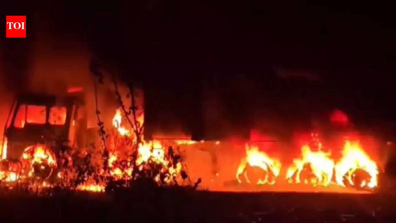 DUMKA: A massive fire broke out in Dumka after a vehicle carrying flammable material was hit from behind by another vehicle, triggering a blaze that gutted four trucks. Sub-Divisional Officer Kaushal Kumar said the incident led to casualties, though the exact number is yet to be confirmed. The fire has since been brought under control, according to news agency ANI. “The fire has been extinguished. The administration received information that a vehicle carrying lighter (flammable material) was hit from behind by another vehicle, causing the lighter to fly out and catch fire. Four vehicles have burned. There were some casualties. A person sleeping in the vehicle was burned, and the driver was also burned and has been taken to the hospital… The container on which the lighter was mounted was hit, and the fire started from that lighter... At present, the situation is under control, and the fires have been extinguished… But we will keep another vehicle ready, as there is a possibility that the lighter may still be on fire and could spread…” he said.Authorities are maintaining precautionary measures to prevent the fire from reigniting.