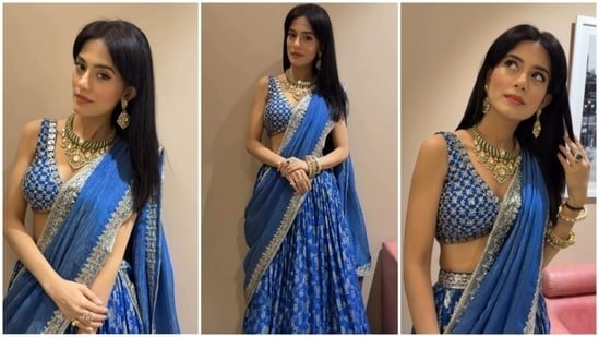 Amrita Rao was a vision in blue brocade lehenga