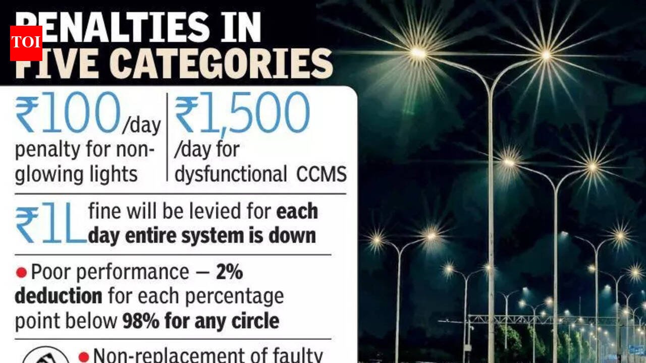 Hyderabad: With more than 70% of streetlights in Greater Hyderabad nearing the end of their life, the three municipal corporations under the Core Urban Region (CURE) are preparing for a large-scale overhaul of the city’s lighting network.According to a GO accessed by STOI, around 7.6 lakh streetlights across the three civic bodies will be replaced, operated, and maintained in phases under a unified tender estimated at Rs 1,340 crore for a period of 10 years.Under the proposal, the selected concessionaire will be required to replace all existing streetlights and Centralised Control and Monitoring System (CCMS) boxes within six months, while also taking responsibility for the operation and maintenance of the entire lighting network during the contract period.As part of the monitoring system, the agency must maintain detailed records of the replacement process, including photographs and unique identification numbers of old and newly installed lights and CCMS boxes. Survey data will have to be updated by the contractor and verified by GHMC officials.The project will also rely on real-time monitoring through CCMS boxes, enabling authorities to track the status of streetlights, electricity consumption data from TGSPDCL, and detect issues such as power leakage, theft, or malfunctioning units. Any discrepancies identified will have to be investigated and rectified by the contractor.To ensure accountability, the new system introduces strict performance-based penalties. If a streetlight remains non-functional for a day, the contractor will face a penalty of Rs 100 per light per day. Similarly, faults in CCMS boxes will attract a penalty of Rs 1,500 per day.GHMC officials said the new model aims to address several shortcomings faced during the earlier arrangement with Energy Efficiency Services Limited (EESL). “The previous system suffered from limited manpower for maintenance, absence of dedicated CCMS support teams, an inadequate number of warehouses and vehicles, and a non-functional IT monitoring system without real-time dashboards,” said an official in GHMC.Officials also noted that EESL proposed an extension of the contract at Rs 211 per light per month, whereas a similar tender floated in Delhi in 2025 for 3.9 lakh lights over 12 years was awarded at Rs 186 per light per month.Under the new tender conditions, the selected agency will be responsible for ensuring uninterrupted street lighting, reducing downtime of failed lights, lifecycle-based asset management, and systematic maintenance planning. The scope of work includes pole-to-pole cabling, maintenance of LED luminaires, upkeep of pole boxes and accessories, and replacement of damaged poles.The system will also feature a centralised monitoring platform, phased replacement of lights that fail or reach end of life, and a complaint redressal mechanism requiring faults to be addressed within 48 hours. The initiative is expected to improve illumination levels across the city while ensuring faster maintenance and better accountability.