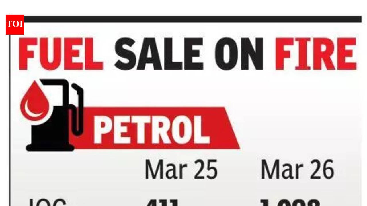 Lucknow: Fuel consumption in Lucknow witnessed a dramatic surge on Thursday when rumours led to queues at the pumps, with petrol sales jumping by over 140% and that of diesel by more than 100%.According to consolidated figures from three govt oil companies — Indian Oil Corporation Limited, Bharat Petroleum Corporation Limited, and Hindustan Petroleum Corporation Limited — total petrol sales increased from 881 kilolitres (KL) on Wednesday to 2,123 KL on Thursday, a steep rise of 141%.Similarly, diesel sales climbed from 768 KL on Wednesday to 1,591 KL on Thursday, a jump of 107% in 24 hours.District supply officer, Lucknow, VP Singh, said the spike in demand was largely driven by bulk purchases by consumers amid rumours regarding fuel availability. He reiterated there is no shortage of petrol or diesel at 290 outlets in Lucknow district, adding that supply lines remain stable.The administration has appealed to the public to avoid panic buying and warned that such behaviour could lead to unnecessary pressure on supply systems and create artificial scarcity.“Monitoring of fuel stations has been intensified to ensure smooth and regulated distribution. All SHOs are on alert. PAC jawans and cops have been deployed at some retail outlets in the city to maintain,” said JCP, law and order, Babloo Kumar.Chief warden, civil defence, Amarnath Mishra, told TOI that civil defence volunteers were deployed at petrol pumps on Friday where they assisted in crowd management and ensuring orderly fuel distribution.Some residents claimed that fuel rationing was done at several petrol pumps amid the sudden surge in demand.Mohammed Bilal, a resident of Dewa Road, said he was allowed petrol worth only Rs 2,000 in his car, and when he requested more, the pump staff refused, citing instructions to limit supply. Akash Sharma, a two-wheeler rider from Rajendra Nagar, said he was given petrol worth just Rs 200 despite needing more for daily commuting.