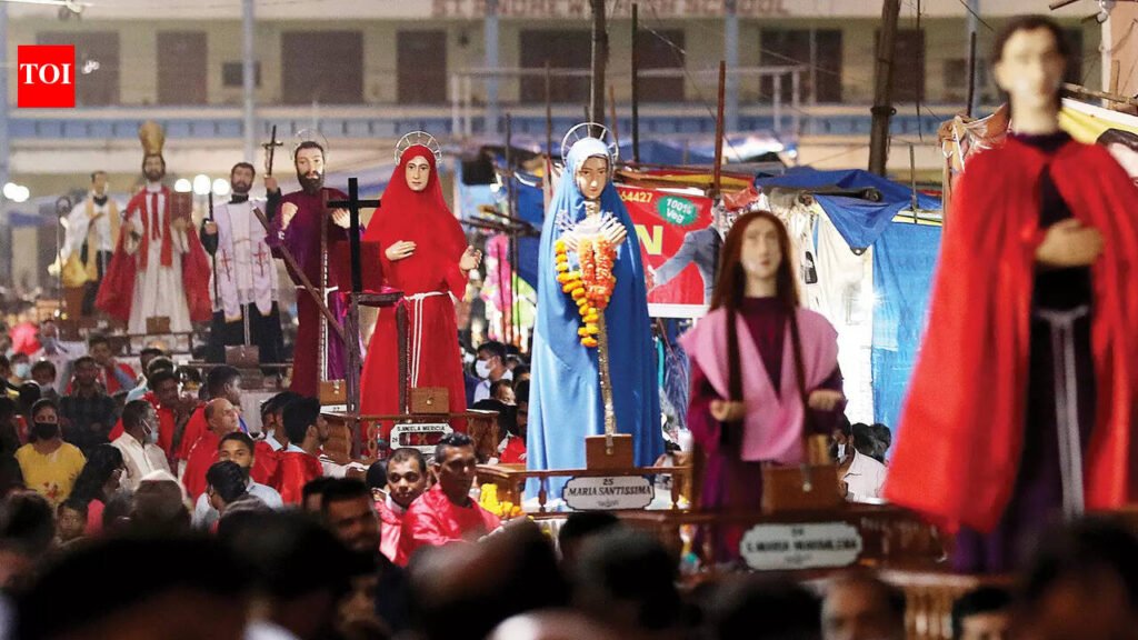 “I’ve been trying to tell the people that this is not a feast, so there cannot be a celebration,” said parish priest of St Andrew’s church, Fr Antonio Albuquerque. “I’ve asked people not to wish each other ‘happy feast’, because it’s not a feast. It’s a misnomer. All these years, the penitential character of the procession seems to be lost somewhere.”The procession, a Lenten penitential practice, started between 1614 and 1617 from Pilar, where the Franciscan Capuchins—the first order to reach Goa in 1517 after the Portuguese conquest of Goa—had their monastery.Interestingly, the procession did not have any saint at the start. “At first, the procession was only of the Veil of Veronica. It is believed that the Franciscan priests brought the veil from Rome along with them. By the end of the 17th century, a lot of saints were added, 65 to be exact. The focus is on Jesus and his cross. This was a way of telling people how the saints lived their lives,” said Albuquerque.