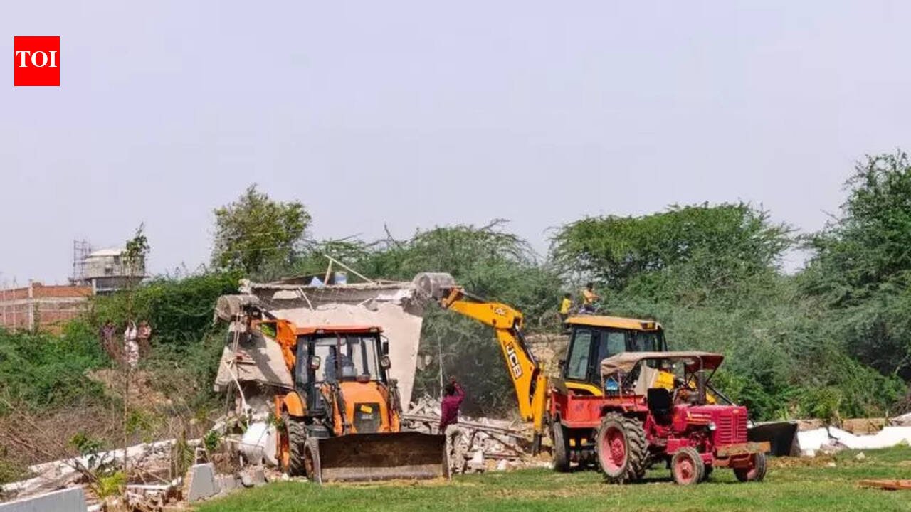 Kanpur: Ghatampur tehsil administration on Tuesday freed 0.5600 hectare of pasture land on the Kanpur-Hamirpur highway in front of the Naveli Power Plant from encroachment using bulldozers.The action formed part of an ongoing campaign against land mafias launched by the district administration. The value of the illegally occupied pasture land was around Rs 10 crore.According to revenue records, Gata No. 349 B (0.3826 hectare) and Gata No. 350 (1.6800 hectare) were recorded as pasture land. It was alleged that Rajveer Singh, son of Santosh Singh, a resident of Koyla Nagar, and his family members had illegally occupied about 56 biswa of grazing land.Officials said the encroachers constructed a building under the name Kalindi Hotel and developed a hotel lawn, roads and other public amenities. The pasture land was excavated and used for commercial activities.The revenue department had earlier issued instructions to stop the construction work, but the encroachers continued construction and converted the land meant for public use into private commercial use. During a visit on Saturday, the SDM Ghatampur, warned the hotel operator to remove the illegal encroachment, but he did not show interest in removing it voluntarily.The revenue team again asked for the possession to be removed in the presence of the owners, but they did not react. On Tuesday morning, the revenue and the police administration took joint action and freed the land from encroachment by removing illegal construction with bulldozers.The hotel management protested during the demolition. The hotel manager, who resisted, was detained by the police and sent to jail. Further legal action was initiated against the encroachers.
