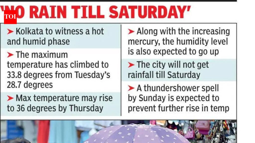 Kolkata: Brace to encounter hot and humid weather after the rain respite. The mercury is set to surge past the normal mark along with the humid factor. The deadly combination of the heat and humidity is expected to make the city singe, pushing up the discomfort factor. A special IMD bulletin has warned of similar conditions for other districts also, including neighbouring Howrah, South and North 24 Parganas.“Mainly dry westerly to northwesterly wind likely to prevail at lower tropospheric levels over the region and consequently hot and humid conditions are very likely to occur over some districts of South Bengal from April 2 to April 4,” said the IMD special bulletin.While thundershowers and a partly cloudy sky pushed the maximum temperature to a whopping six notches below normal on Tuesday to stand at 28.7 degrees, it surged to 33.8 degrees on Wednesday in Kolkata. While this was 0.8 degrees lower than the normal, the rise of five notches from Tuesday has already started making the heat impact.“We expect the maximum temperature in Kolkata to reach 36 degrees by Thursday and stay around this mark for the next three days. While the solar insulation will make it hot, the presence of adequate moisture in the ground level will push up the humidity level. Hence we are entering a phase of hot and humid weather, making the discomfort level high,” said meteorologist HR Biswas, head at Regional Meteorological Centre Kolkata.If the mercury touches the 36-degree mark, it will not only be the highest this summer but also the maximum temperature will be breaching the normal mark after a gap of 19 days.“While we expect the city to remain dry till Saturday, even if there is localised thundershower, the chances are only about 10%, we are likely to encounter another thundershower spell from Sunday onwards. Once that happens, it will tame the heat and humidity again,” said Biswas.The Met officials said that the wind pattern is likely to change by Friday. In addition, there is also the possibility of other weather systems like the passing of a western disturbance, formation of a trough or anticyclonic circulation that would enhance the possibility of rain.In the past decade and a half, the maximum temperature in April crossed 40 degrees Celsius in four years, including in the consecutive April of 2024 and 2023.Despite the forecast for hot and humid days ahead, the Met office however allayed the fears of heat wave-like conditions for now as the maximum temperature is unlikely to touch the 40-degree mark for now.