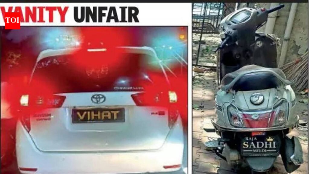 Ahmedabad: Traffic rules violated by a ghostly procession of hulking jeeps, swaggering SUVs, and souped-up bikes are never detected because these vehicles tear around the city without number plates. Sometimes these vehicles use fake plates or have PRINCE or SIX-SEVEN slapped on the plate. Even AI-enabled public surveillance cameras cannot trace an offence to a registered vehicle. Irate residents say these vanity-plate daredevils are road bullies. The real rot, however, sits at the source: dealers handing over vehicles without proper registration. A master’s student, Prakash Jhadav, on Friday reported a black jeep with PRINCE emblazoned on the plate driving aggressively near St Xavier’s College Road in Navrangpura. “The jeep drove past me on that narrow road. I thought the vehicle would run over me,” Jhadav said. “I turned around and saw only the prince tag on the registration plate.” Officials estimate nearly 5-6 lakh vehicles across Gujarat are running without valid plates. In Ahmedabad specifically, traffic police drives reveal that one out of every 15 vehicles is a violator. A senior traffic police official pointed to Facebook pages showing delivery ceremonies as evidence, “Just go over the pages of leading dealers and see for yourself; family members are handed keys to cars without any registration plates.” The city’s AI-enabled CCTV network is technically a powerhouse. These smart cameras are capable of facial recognition, tracking travel routes, and logging exact times of travel to associate a specific face with a plate-less car. However, technology hits a dead end at the gates of private residential societies. “The moment we flag a violator on the move, tracing them once they vanish into a complex is nearly impossible,” says a senior traffic police officer. Traffic cops note that while front number plates are often standard to pass initial inspection, owners intentionally turn rear registration plates “fancy” or remove them entirely to evade cameras. Meanwhile, the RTO continues to play the victim card, claiming it does not have enough staff to manually intercept and seize such vehicles.