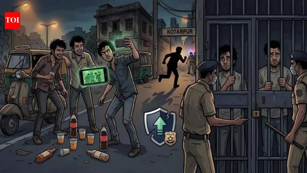 Ahmedabad: Though alcohol is prohibited in Gujarat, three men not only held a liquor party, but did so on a public road, and also posted about it on social media. The clip swiftly gained traction online, drawing the attention of the police who tracked down the accused to Sardarnagar and arrested two of them on Wednesday. A hunt is on for the third.The video clip, posted on Instagram, showed “four plastic glasses containing liquor-like liquid” and “two soda bottles” placed on the ground near a road, said police. “The clip was captioned: ‘Liquor party in the open in Kubernagar’. It referred to ‘an open drinking session on the road’ during the code of conduct period,” police added.Officers traced the video’s location to a spot near Kotarpur. During the investigation, police identified the three men as residents of Shantinagar in Noblenagar area of Sardarnagar. Officials said two of the identified men were arrested, while efforts are under way to trace the third suspect. A case has been registered under prohibition law provisions, and efforts are going on to nab the third person.