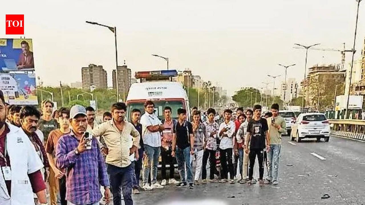 Ahmedabad: A 27-year-old driving a two-wheeler and his pillion rider died near the Gota flyover after being hit by a dumper on Wednesday evening. A complaint was not registered till reports last came in.According to witnesses, the victims — Narpat Danfi, a 27-year-old Tharad resident living at a PG near Kocharb Ashram in Paldi, and Sushilkumar Prasad, a resident of Ballabhgarh in Uttar Pradesh — were travelling on a Honda motorcycle. It appears that Prasad might have booked a two-wheeler ride through a radio cab service, said police.Inspector R V Vinchhi of Sarkhej-Gandhinagar traffic police said, “The accident took place when the motorcycle was driving down the bridge from the Viashnodevi side. A dumper with the registration number, GJ 24 X 5130, rammed into the two-wheeler. Both men sustained fatal injuries and died on the spot.”The driver of the dumper has been identified as Vimal Dodiya, a 26-year-old resident of Fatepura in Dahod, said the inspector.