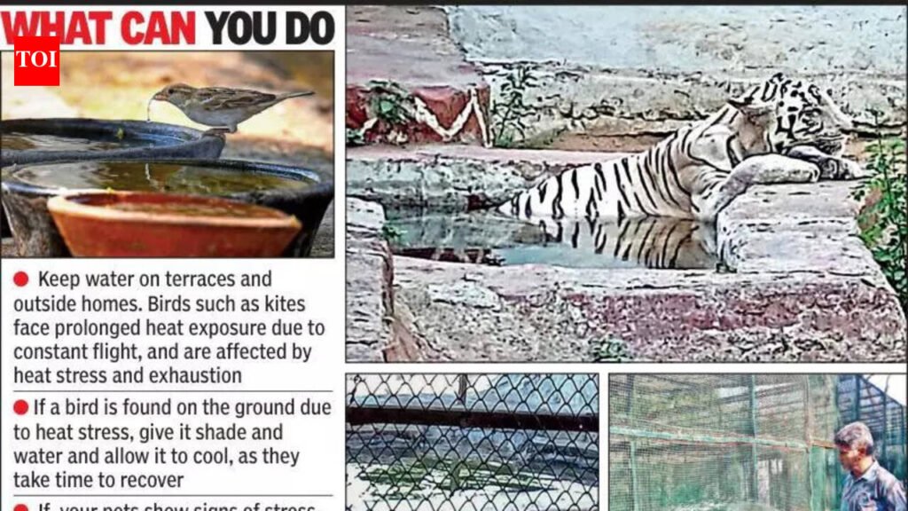 Ahmedabad: On Friday afternoon, as the sun beat down on the city taking the mercury past 39°C, the white tigress at the Kamla Nehru Zoological Garden knew what she needed. A cooling snooze in the pool inside her enclosure. Her caretakers have ensured that the pool remains full for her to take a dip and keep her body temperature regulated. Like her’s, enclosures of all animals in the zoo have arrangements — ponds, showers, and coolers — to keep their inhabitants protected from the rising heat. These were put in place last week when the maximum temperature shot to 41.4°C, unusually high for early March.Zoo superintendent Dr Sharva Shah, told TOI that these measures will help prevent heat stroke and heat stress among animals and birds. While the big cats have coolers installed, the pond in the hippo’s enclosure is cleaned and filled with fresh water regularly.“In the afternoons, water is sprayed in the enclosures to keep the ambient temperature low. Summer also entails a special diet such watermelons, muskmelons, and sugarcane. ORS is also provided to prevent dehydration,” said Shah. “The greenery in the periphery too helps keep the temperature cooler than the surroundings.”The geological aeration method kept inhabitants of the nocturnal zoo cool. Cooler subterranean air is circulated to maintain stable temperatures, which is considerably lower than outside, said zoo authorities. If an animal is resting in a shaded area, visitors have been advised not to disturb them, as they may need the rest to regulate their body temperature.