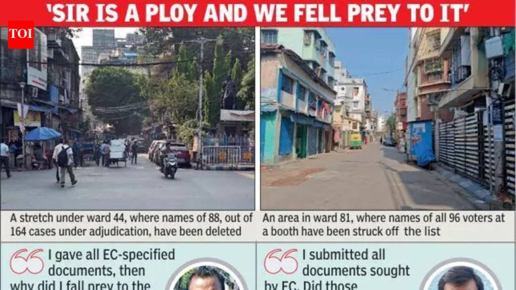 Kolkata: The second supplementary list brought out last night dealt a heavy blow to many families living in the city for generations. Exactly a month after the release of the final roll on Feb 28, they woke up to the shock of losing voting rights on Saturday morning. Now, they are looking for help to appeal in the tribunal for restoration of their rights.All these voters stated that despite having all “legitimate” documents needed for the special intensive revision (SIR) of electoral roll, their names were marked under adjudication and then deleted. The “deprived” voters questioned if their documents reached the judicial officers scrutinising their cases.Ward 54 (part 30) under Entally constituency, covering Beniapukur, Suresh Sarkar Road, Sir Syed Ahmed Road, Mofidul Islam Lane, Ismail Street, witnessed as many as 249 voter deletions out of 382 adjudication cases. “The names of my mother, father, sister along with mine have been deleted. We have been living in the neighbourhood for 35 years,” said Shabaz (29).At a booth in Rashbehari constituency (part 46), 96 electors were under adjudication and all of them found that their names were struck off the roll. These residents of Deshpran Sashmal Road under KMC ward 81 grew up in the area and their families are also living here for generations.“During hearing I submitted all documents sought by EC officials. Did they reach the judicial officer? I doubt. It is my belief that having seen the documents that EC officials took from me, the judicial officer would have included my name in the list,” said 49-year-old Dipak Sharma, a Rashbehari resident.The voters marked ‘deleted’ are now seeking help to make an appeal in the tribunal. “It is mentioned that deleted voters like me can make an appeal within 15 days before the appellate tribunal in online or offline mode. I don’t know how to do that and will take help of my neighbours who met the same fate,” said another deleted voter in Rashbehari, Bapi Das.Ward 44 under Chowringhee covering parts of Mechhua, Colootola Street, Tiretta Bazar, Phears Lane, saw 88 disenfranchisement out of 164 cases under adjudication. Mudassar, whose family has been living in the area for 93 years, has been deleted from the roll along with 9 other family members.Md Sajjad, a deleted voter from Chowringhee, said, “Five in my family were under adjudication. My mother’s name has been included in the supplementary list but my name, along with my wife’s and two of my sister-in-laws’ have been deleted after judicial scrutiny.”