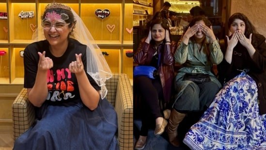 On Friday, Anshula took to Instagram to share a glimpse of her bachelorette party through a series of pictures. The reality show star jetted off to Seoul for some fun time with her friends before becoming a bride. In one of the photos, she was seen wearing a white veil on her head and a crown, along with oversized, round glasses that read “Bride to Be”. She also flashed a Korean heart while posing for the camera.