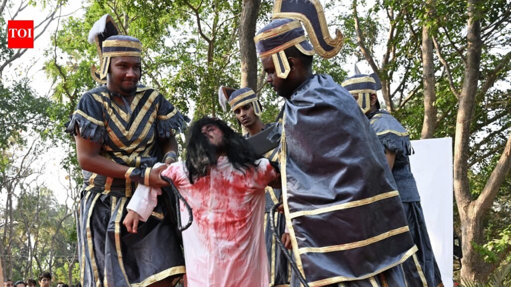 MUMBAI: The 40-day penance of Lent will peak at Good Friday April 3. The Christian community will lead live tableaux depicting the final hours of Jesus Christ followed by his crucifixion. Concern over the new anti-conversion law enacted in Maharashtra, and the conflict in the Middle East, will resonate in the themes.Around 600-800 parishioners of Our Lady of the Forsaken Church in Malwani will arrive for Good Friday service, said parish priest Fr Wilfred Vaz. “There is no mass since Jesus is absent [crucified], but we distribute communion which has been blessed on Holy Thursday. At the end of the service youngsters enact Christ’s crucifixion. In fact people ask why do you call it Good Friday, what is good about it if Christ died this day. However, the term derives from the fact that Christ died for the good of humanity,” Fr Wilfred said.Fr Nigel Barrett, spokesperson for the archdiocese of Bombay, is also parish priest of St Andrew’s Church, Bandra. He said, “Lenten observances culminate on Maundy Thursday with a life-size Last Supper display and on Good Friday with the Crucified Christ solemnly being brought down from the cross and entombed. Though seemingly defeated, the king of the universe was crowned with thorns, enthroned on the cross, and used his divine power to forgive his executioners, as he bore the sins of humanity.“Around 10.00 am Friday at Sacred Heart Church in Santacruz, hundreds of Christians will attend the live Stations of the Cross enacted in Broadway musical style organised by the Christi Sevak Federation. Organiser Joseph Dias said the parade started 37 years ago when many non-Christians believed that Good Friday was a feast, rather than mourning.This year CSF will pray for “persecuted Christians and innocent people who may be affected by the anti-conversion law” passed by the Maharashtra state assembly. Taking a cue from Pope Leo, the gathering will also pray for peace in the Middle East.A 23-year-old marketing professional Del Jacinto will enact the part of Jesus. He says carrying the actual wooden cross for six hours as he walks through the streets does not pose a burden thanks to the love and faith of thousands of spectators who line the route. “Some people are so moved they come to seek my blessings. I do not bless them because I am not God, but I pray for them,” Jacinto said.Meanwhile in Thane after 52 years of litigation, parishioners of Our Lady of Mercy Church were able to offer Maundy Thursday mass at the 1562 church, said activist Melwyn Fernandes.