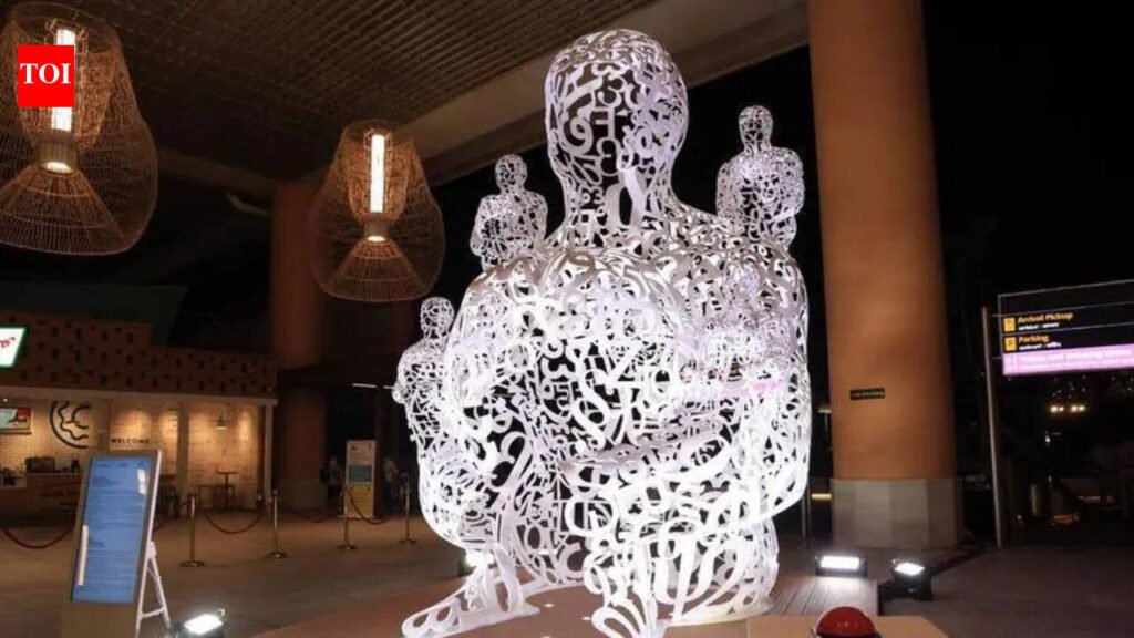 BENGALURU: Spanish artist Jaume Plensa’s 16ft sculpture titled ‘Bengaluru’s Soul’ at Terminal 2 of Kempegowda International Airport (KIA) became one of the most Instagrammable spots within minutes of being unveiled Saturday evening, offering travellers a “wow” moment.Plensa’s monumental work featuring interlaced ideograms of alphabets in Kannada, Arabic, Chinese, Tamil, Armenian, Korean, Greek, Hebrew, Thai, Hindi, Japanese, and Latin, woven together with mathematical symbols, adorns the arrival forecourt of T2. One of the world’s foremost contemporary sculptors, Plensa offers a glowing tribute to Bengaluru’s diversity, creativity, and global outlook through this installation. Measuring 500 x 319 x 375cm, it also aligns with KIA’s vision of integrating art and culture into the infrastructure.“I have an irresistible urge to bring beauty into everyday life for communities who may not visit galleries,” says Plensa, who has created landmark works in cities such as Chicago, New York, London, Madrid, Barcelona, and Tokyo.The installation, funded by Biocon Foundation, was unveiled by Juan Antonio March Pujol, ambassador of Spain to India. Addressing the media before the unveiling ceremony, Biocon group chairperson Kiran Mazumdar-Shaw described discovering the sculptor through works seen at Massachusetts Institute of Technology in Cambridge and later in Barcelona, before eventually being introduced to him through a hospital. After visiting Plensa’s studio, Shaw invited him to India; he loved the country and agreed to create a major public artwork for Bengaluru. “It’s a masterpiece that captures the spirit of a city where ideas, cultures, and innovation converge. I hope people will appreciate this wonderful work of art,” said Shaw, adding: “Public art humanises civic spaces and fosters a shared sense of identity. Building resilient cities requires not just infrastructure, but investment in culture and creativity.”