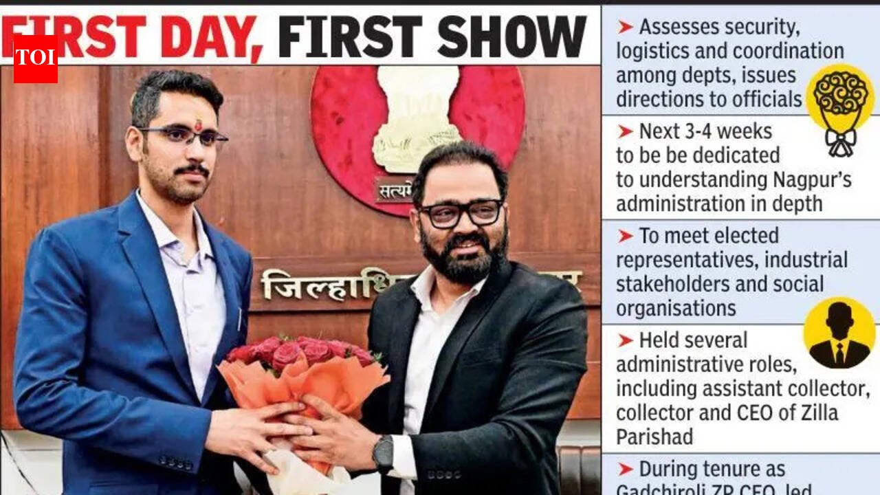 Nagpur: IAS officer Kumar Ashirwad on Monday assumed charge as Nagpur district collector succeeding Vipin Itankar. Soon after taking charge, Ashirwad convened a meeting with department heads to review ongoing schemes, administrative functions and key initiatives. He also conducted a round of the district collectorate, personally visiting depts and interacting with officials and staff to understand workflows and ensure smooth governance.Ashirwad also reviewed preparations for the upcoming visit of President Droupadi Murmu, scheduled on April 15 and 16 to attend programmes at the National Academy of Direct Taxes (NADT) and AIIMS. He assessed security, logistics and coordination among depts, issuing necessary directions to officials.Outlining his immediate priorities, Ashirwad said the next three to four weeks would be dedicated to understanding Nagpur’s administration in depth. He plans to meet elected representatives, industrial stakeholders and social organisations.An IIT Kharagpur graduate in civil engineering, Ashirwad, born in 1988 in Jharkhand, belongs to the 2016 IAS batch, Maharashtra cadre. He has held several administrative roles, including assistant collector, collector and CEO of Zilla Parishad.During his tenure as Gadchiroli ZP CEO, Ashirwad led innovative initiatives in education and child nutrition. He spearheaded the nationally recognised ‘Fulora’ programme during Covid-19 pandemic, which supported primary school students in remote areas through community-driven learning. Ashirwad also demonstrated his hands-on approach by visiting remote villages such as Binagunda in Gadchiroli, trekking through muddy terrain to personally assess development works and interact with locals.Prior to Nagpur, Ashirwad served as Solapur collector, where he focused on transparent administration, streamlined governance and efficient delivery of public services. Known for his direct engagement with field-level operations, he has established a reputation for a hands-on, results-oriented administrative style.