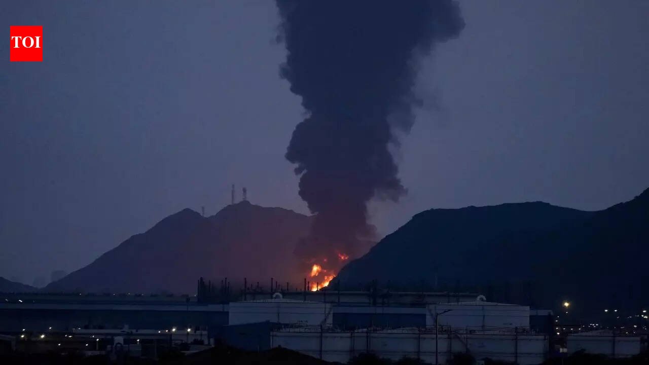 Large fire and plume of smoke is visible after, according to the authorities, debris of an Iranian intercepted drone hit the Fujairah oil facility. (AP/PTI)