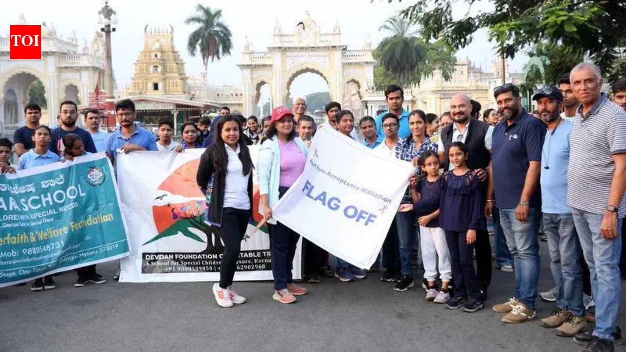 Mysuru: An autism awareness walk was held in the city Sunday to promote awareness, acceptance and inclusion, drawing wide public participation. The walk began at Kote Anjaneya Swamy Temple near Mysuru Palace and concluded at Oval Ground. Founder of Literature Club Mysore Shuba Urs, educationist Kishore Biddappa and activist Bopanna stressed the need for empathy, early intervention and equal opportunities for individuals on the autism spectrum. They said inclusion must move beyond awareness to education, employment and everyday social interactions. The initiative was led by Kotera Dilip Devaiah, Ballachanda Dhanya Uthappa and Sangeetha of Padha Trust, with volunteer support from Project Reach Out. A key focus of the walk was employment opportunities for neurodivergent individuals. The event was held in association with Paddha Trust, Rotary e-Club Mysore, Project Reach Out Mysore and Eshwar Vidhyala Mysore.
