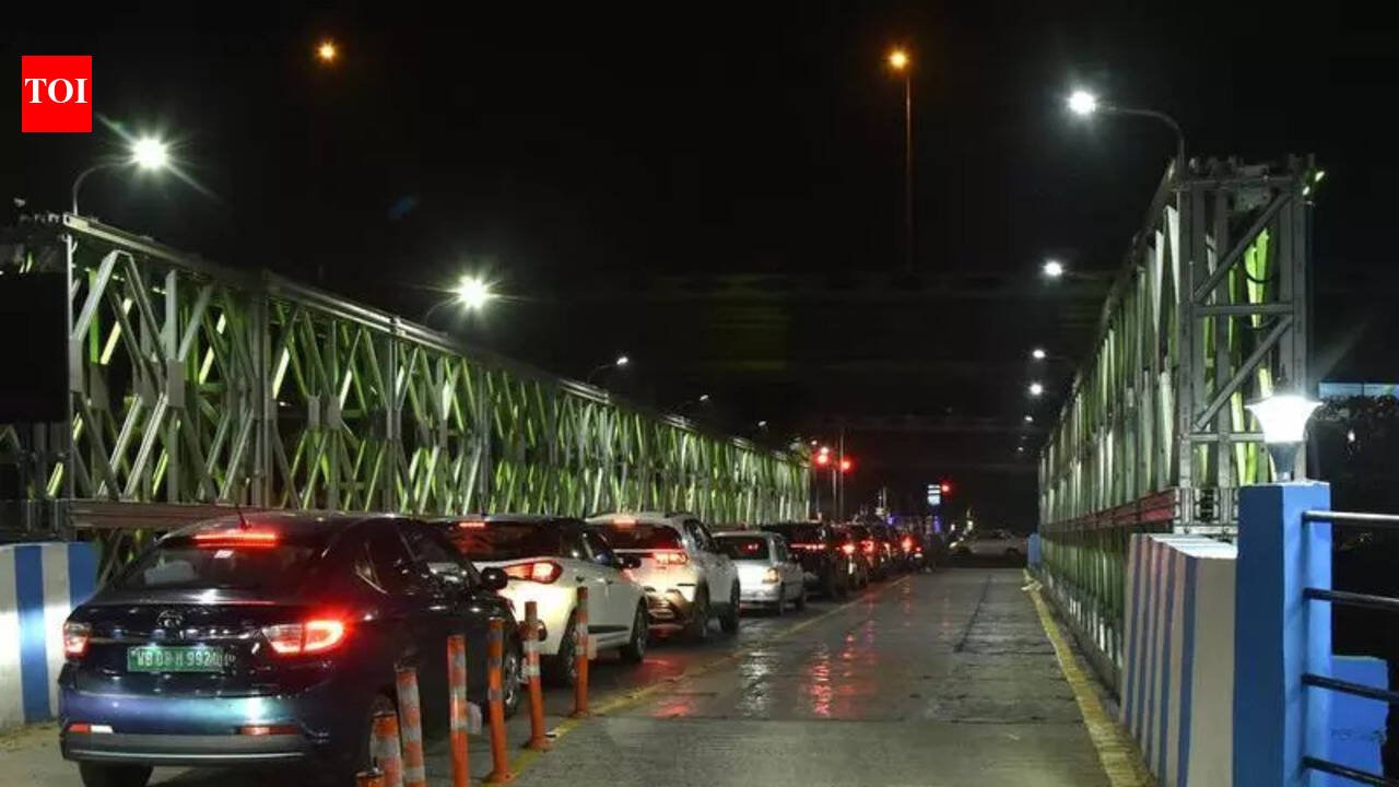Kolkata: Following trial runs, the newly set up Bailey bridge connecting Salt Lake AA Block and VIP Road at Dakshindari is open for both-way vehicular movement from 7 am till 10 pm. Further steps, such as installing height bars, CCTV and a traffic signal system on the VIP Road approach end, will be taken, after which the bridge may be thrown open to traffic for 24 hours.Earlier, Bidhannagar traffic police had initiated a trial run of the bridge from Feb 11 evening to assess the traffic flow patterns and to check traffic management hindrances. During the trial run, officers said height bars need to be installed to prevent the entry of very heavy vehicles weighing over 100 metric tonne. To ensure public safety, CCTV cameras and a traffic signalling system need to be installed on the VIP Road approach bridge. “Entering the airport-bound VIP Road flank from Salt Lake is now easier and less time-consuming. However, sometimes there’s congestion on the Salt Lake end of the bridge,” said a motorist.