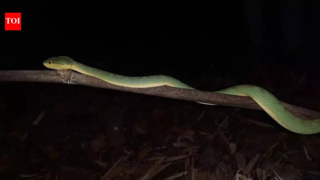 Surat: An study by a researcher from the city and a scholar from Germany has found that bamboo pit vipers (Trimeresurus gramineus) in Dang show strong fidelity to specific perches and rely on particular trees and shrubs for survival, pointing to a close ecological link between the species and its vegetation habitat. The study found that individual pit vipers return to the same perch even after being experimentally displaced, confirming site fidelity.The study, by Dikansh Parmar from Surat and Dr Hinrich Kaiser of the herpetology department at Leibniz Institute for the Analysis of Biodiversity Change (LIB) at Museum Koenig in Bonn, documents site fidelity in pit vipers. It was published in Discover Ecology. The study was carried out between Jan 2022 and May 2025. The researchers recorded 44 individual pit vipers during night surveys along forest roads. Most snakes were found 3-7 meters above the ground, perched on roots, shrubs or bamboo growing from cliff-like slopes.Parmar said, “The bamboo pit viper is the only pit viper species recorded in Gujarat, which represent the northernmost edge of its range. Despite its IUCN status as ‘of least concern’, the species faces growing threats, including habitat disturbance from road construction, erosion, vegetation clearing and illegal wildlife trade.”The researchers confirmed that these snakes reliably remained on their respective perches for a one-month period. Then they collected them, examined their scalation, sexed them, measured their length and photographed them before keeping them in captivity for 48 hours. Later, the snakes were released a few meters away from their previous location. The study found that all translocated snakes returned to the exact perches from which they were removed.“They kept going back,” Parmar said. “Even when we moved some snakes away during our observations, they returned to the exact same perch in 72 hours. This clearly shows that these snakes are tightly linked to specific microhabitats. During our previous studies on snakes, we have not noticed this behaviour.”The researchers explain that because the species is slow-moving, it prefers to use locations that offer effective camouflage, and it returns to the same spots because they provide a comparative survival advantage. In their natural habitat, these snakes are camouflaged among foliage and blend into bamboo thickets and vegetation.The snakes were not found during the daytime, as they emerged from subterranean shelters just after dusk, while the encounter frequency was markedly reduced during monsoons.Dr Kaiser said, “This study reveals how closely certain species are tied to very specific microhabitats. Protecting these roots, shrubs and bamboo is essential not just for the pit vipers, but for the broader ecological balance of these forests. Even small roadside vegetation can be critical for survival.”“These snakes return to the same perches night after night, showing incredible loyalty to their home trees and shrubs,” Parmar added. “It’s a vivid reminder that protecting wildlife sometimes begins with protecting a single root or tree.”The study, titled “Hanging in the Balance: An Ecological and Conservation Assessment Reveals Growing Threats to the Bamboo Pit Viper in the Dangs Forest of Gujarat, India,” offers a detailed account of site fidelity in pit vipers and highlights the vital interdependence between the snakes and the vegetation they rely upon.