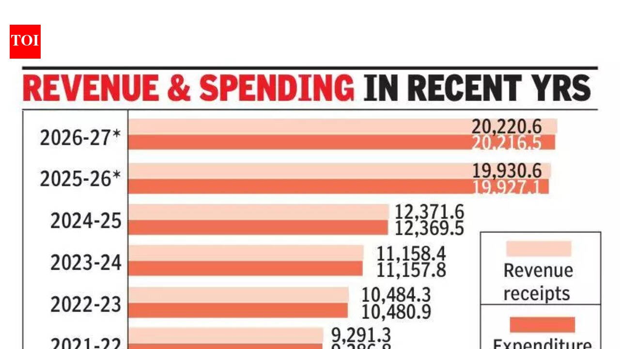 Bengaluru: The combined city-level budget for 2026-27 points to incremental growth rather than any sharp expansion, suggesting limited fiscal space for new big-ticket projects. Revenue receipts are projected at Rs 20,220.6 crore, a marginal rise from Rs 19,930.6 crore in 2025–26, while expenditure is estimated at Rs 20,216.5 crore, up from Rs 19,927.1 crore.The near parity between income and spending leaves only a small surplus, continuing a long-standing trend in the city’s finances. Revenue receipts have risen steadily from Rs 9,291.3 crore in 2021-22 to Rs 10,484.3 crore in 2022-23, Rs 11,158.4 crore in 2023-24, and Rs 12,371.6 crore in 2024-25. While the trajectory is upward, the increments remain modest, indicating that the city’s fiscal capacity has not expanded significantly. Expenditure trends mirror this gradual rise, increasing from Rs 9,286.8 crore in 2021-22 to Rs 10,480.9 crore in 2022-23, Rs 11,157.8 crore in 2023-24, and Rs 12,369.5 crore in 2024-25. The projections for 2025-26 and 2026-27 continue the same pattern of calibrated increases, pointing to a cautious fiscal approach that prioritises balance over expansion. As a result, annual surpluses have remained negligible. The city recorded a surplus of Rs 4.5 crore in 2021-22 and Rs 2.1 crore in 2024-25, with similar small margins in other years. For 2026-27, the surplus is expected to remain just above Rs 4 crore. Such narrow margins leave little buffer to absorb unforeseen expenditure or to fund large new initiatives.The tight balancing also suggests that most of the available resources are already tied up in committed expenditure. Routine obligations such as salaries, maintenance, and ongoing infrastructure works continue to account for a significant share of spending, limiting flexibility for fresh investments.Across the five zonal corporations, the same approach is evident. Each has drawn up budgets where expenditure closely tracks revenue, resulting in only marginal surpluses.Bengaluru West corporation has the largest outlay, with receipts of Rs 4,732.8 crore and expenditure of Rs 4,732.7 crore. North corporation follows with Rs 4,344 crore in receipts and Rs 4,341.2 crore in spending. East corporation has budgeted Rs 3,890 crore in receipts as against Rs 3,889.9 crore in expenditure, while South corporation has projected Rs 3,826.4 crore and Rs 3,825.9 crore, respectively. The Central corporation, with a relatively smaller budget, has estimated receipts of Rs 3,427.3 crore and expenditure of Rs 3,426.6 crore.Despite it being the first set of budgets after the formation of the Greater Bengaluru Authority (GBA), there are no major standalone project announcements across corporations. Officials say infrastructure works will be taken up within existing allocations, with a focus on road development, including ward roads as well as arterial and sub-arterial networks.Overall, the finances reflect discipline and stability, but also underline a key constraint: with revenues and spending tightly matched year after year, the city has limited room to independently scale up large projects without a significant increase in its resource base.