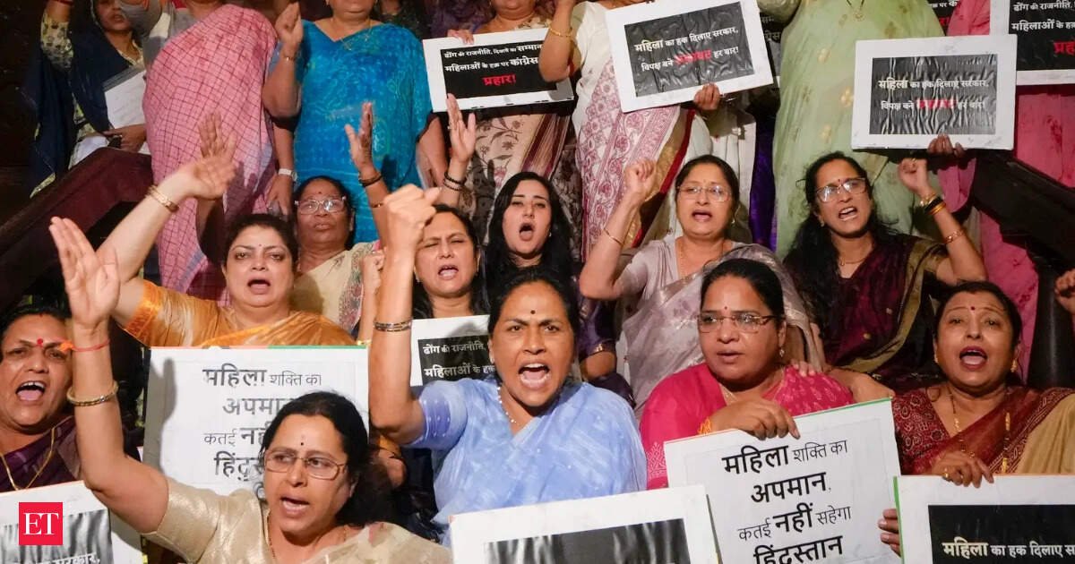 Holding placards and raising slogans of “India will not tolerate this insult to women”, they alleged that the opposition, led by Leader of Opposition in Lok Sabha Rahul Gandhi, deliberately blocked a measure aimed at enhancing women’s representation in legislatures.