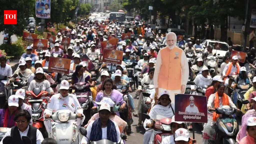 Hyderabad: BJP Yuva Morcha organised a scooty rally in the city on Wednesday in support of the Women’s Reservation Bill. The rally, which began at Narayanguda and proceeded to the assembly, saw the participation of hundreds of women, including members of the BJP Telangana Mahila Morcha and youth activists. BJP state president N Ramchander Rao attended the event as the chief guest.Speaking on the occasion, he said that the issue of 33% reservation for women in legislatures has been pending for the past 30 years. “During the UPA govt’s tenure, the Congress and its allies did not move this bill forward due to pressure. However, under the leadership of Prime Minister Narendra Modi, the Centre successfully passed the ‘Nari Shakti Vandan Adhiniyam’ Bill in Parliament by building consensus among all parties. Now, the Congress is conspiring to create obstacles to the implementation of this bill,” he added. He further said that chief minister A Revanth Reddy is attempting to divide the nation by engaging in politics based on religion, caste and region. “The letter he wrote clearly indicates that the Congress is against women’s reservation,” Rao said.