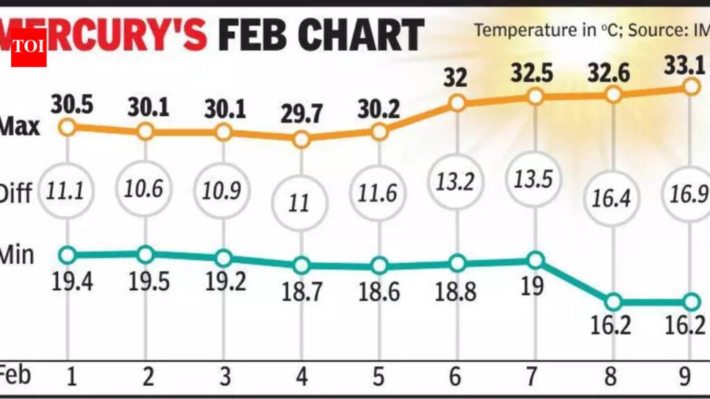 Ahmedabad: Many Amdavadis are currently struggling with the same dilemma: can they get away with turning their fans on full speed or do they need to get their air-conditioners serviced? It is not even mid-Feb, yet the mercury has already soared to 33°C, feeling like the start of summer. However, night temperatures still hover around 16°C, prompting citizens to use a thin blanket in the early hours. This double season is causing many residents to fall ill.Physicians in the city indicate a rise in cases of bronchitis, mild fever, body ache, and sore throat. On Monday, the city recorded a maximum of 33.1°C, 3.4 degrees above normal, while the minimum was 16.2°C, 3 degrees above normal. The gap between the two stood at nearly 17 degrees, the widest in the first nine days of Feb. Over the past week, daily fluctuations have ranged between 3°C and 5°C, according to available data. Dr Pravin Garg said that patients primarily complained about sore throat, dry cough, and fever with body ache. “In several cases, symptoms persist beyond two weeks. The sharp variation between day and night temperatures is a major factor, along with poor air quality on certain days. Most cases require symptomatic treatment,” he said.Dr Pragnesh Vachcharajani added that the ongoing wedding season may be compounding the situation. “Crowded gatherings, outside food and the weather together are aggravating symptoms. Feb-March is typically a transitional period, but this year the fluctuations appear slightly earlier than usual. People with a history of allergies should take precautions,” he said.According to the India meteorological department (IMD), the minimum temperature on Tuesday is likely to hover around 16°C. Across Gujarat, no major change in temperatures is expected over the next seven days.The state is currently under the influence of a Western Disturbance, with cyclonic circulation over north India and an induced cyclonic circulation over south-west Rajasthan. So far this Feb, minimum temperatures in the city have largely remained above normal.