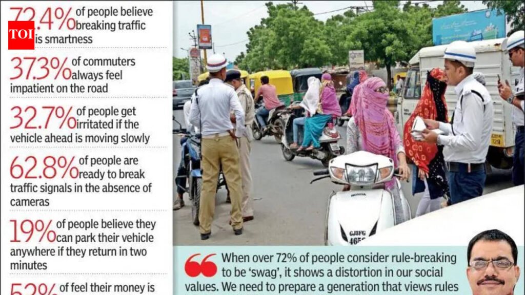 A psychological survey conducted by Saurashtra University has revealed troubling insights into driving behaviour, suggesting that traffic problems here stem more from mindset than infrastructure. Based on responses from 1,456 participants in Rajkot, the study found that 72.4% believe breaking traffic rules is now seen as a sign of “smartness” or “swag”.The study was conducted by researchers under the guidance of Professor Yogesh Jogasan and Dhara R Doshi of the psychology department. It points to a deep lack of self-control and a worrying acceptance of rule-breaking as a status symbol on the roads.Swag Over Safety The most alarming finding is a widespread social distortion in which traffic violations are viewed as ‘smartness’ or ‘swag’. As many as 72.4% of respondents agreed that violating traffic rules has become a sign of ‘swag’ or ‘smartness’.Anger and Impatience Fuel Accidents The survey points to high levels of emotional instability among drivers. While 37.3% admitted to feeling impatient while driving, 32.7% said they get angry immediately if the vehicle ahead is slightly slow. Doshi stressed that such impatience lies at the root of road rage and risky driving. The study also found that 33.7% of drivers indulge in competitive overtaking, revealing a disturbing ego-driven mindset on the roads. External Fear, Not Internal Discipline The lack of internal discipline among commuters is stark. According to the study, 62.8% said they would consider breaking a traffic signal if they knew there were no cameras on the road. This shows that fear of external threats such as police checks and cameras, rather than self-discipline or concern for safety, drives compliance. The survey also highlighted social arrogance, with 60% of respondents believing that drivers of big or expensive vehicles give less importance to those on smaller vehicles. Researchers termed this the “arrogance of power”, where social status is projected onto road behaviour. Call For Change In MentalityWhen asked what is more necessary for road discipline, 68.4% favoured a change in people’s mentality, while 31.6% supported stricter laws. The researchers proposed psychological solutions such as sensitivity training before issuing licences and restoring social values by teaching traffic discipline as part of culture and citizenship in schools. According to the surveyors, the message is clear: fines and cameras alone will not solve India’s traffic chaos. As the report concludes, “This survey proves that if we bring a slight change in our mentality and maintain patience, 90% of road accidents and traffic jam problems can be avoided. Driving is not just a mechanical process but a reflection of your civility and culture.” The surveyors further noted that during traffic jams, red signals or closed railway crossings, the situation is in nobody’s hands. Blowing the horn at such times, psychologists said, is a symptom of negative mentality. The survey was conducted by students of the psychology department, including Jaya Jamod, Smit Ramani, Gautam Lagariya and Divya Jambusa, among drivers in Rajkot.