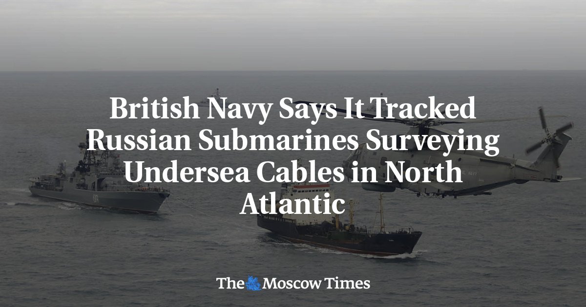 The British navy tracked and monitored three Russian submarines suspected of surveying undersea cables and pipelines in the North Atlantic, British Defense Secretary John Healy said Thursday.