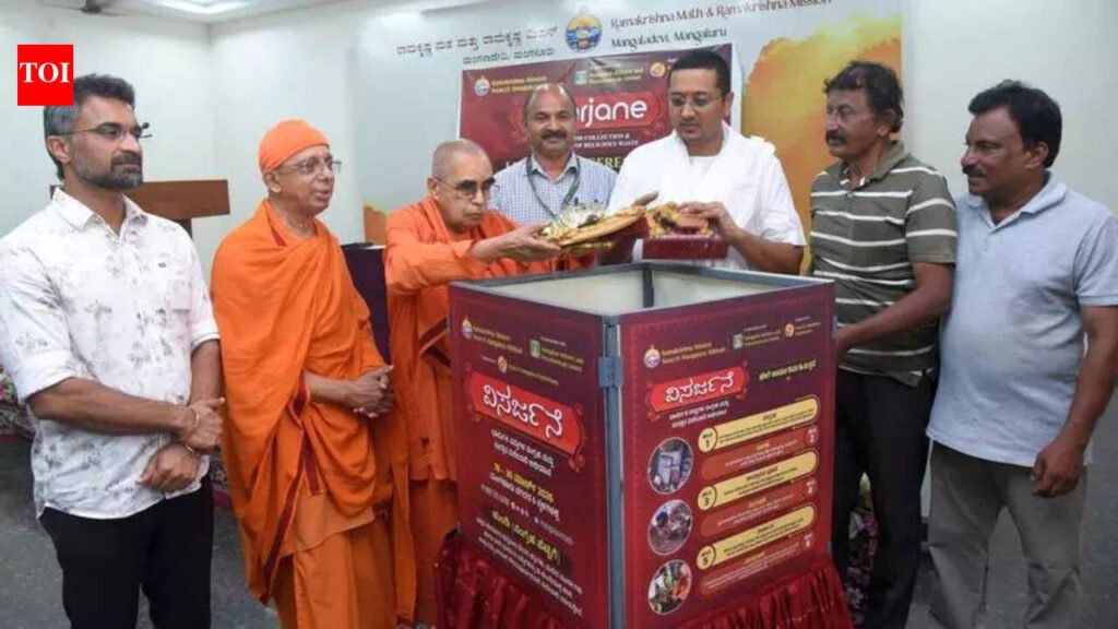 Mangaluru: Ramakrishna Mission Swacch Mangaluru Abhiyan, in association with MRPL and the support of Swacch Mangaluru Prathishtana, launched ‘Visarjane’, a campaign for the collection and safe disposal of religious waste, at Ramakrishna Math here on Monday. The campaign will be held till March 26.Swami Jitakamananda, president, Ramakrishna Math, Mangaluru, said the initiative aims to provide a dignified and respectful way to dispose of old religious items. Temporary collection boxes will be placed at Mangaladevi Temple, Kadri Manjunatha Temple, Bharath Mall, Forum Fiza Mall, City Centre Mall, and Govinda Dasa College campus in Surathkal. People can deposit old framed pictures of deities, broken idols, calendars with religious images, and other puja materials at these centres.He said that during a cleanliness drive in the first week of March, near the Kadri Manjunatha temple premises, volunteers noticed old pictures of deities, broken idols, and other religious items were discarded in public places. The volunteers collected these items, cleaned them, and ensured they were disposed of properly. Following this, it was decided to launch the campaign.All items collected from the six centres will be transported to Kadri temple premises and stored safely for further processing. Before final disposal, temple priests will conduct ‘Udvasana Puja’. After this, volunteers will segregate the materials. Paper-based images of deities will be respectfully immersed in water and later placed in a designated pit in the temple garden, where a Tulsi plant will be planted.Items made of wood, glass, and metal will be sorted separately. Recyclable materials will be sent to recycling units, while non-recyclable materials will be disposed of safely through co-processing in cement factories, ensuring no harm is caused to the environment, he explained.Swami Jitakamananda said the ‘Visarjane’ campaign also intends to create awareness about managing religious waste in a respectful and environmentally responsible manner. The seer appealed to the public not to use images of gods and goddesses on invitations. He pointed out that Ramakrishna Math, Belur, already instructed all its maths not to print invitations with the images of gods or goddesses, as these are often discarded after the events.Keshav Patali from MRPL’s CSR wing said that people are often seen throwing religious scrap, including framed images of gods and goddesses into rivers and other water bodies. He said MRPL would support such initiatives of the mutt.Replying to a query on whether the campaign would continue, the campaign coordinator Ranjan Bellarpady said, “We are receiving queries from other taluks about similar campaigns. We are also planning to set up a permanent collection counter in the city.”Swami Nityasthananda, president, Ramakrishna Math, Basavanagudi, was also present.
