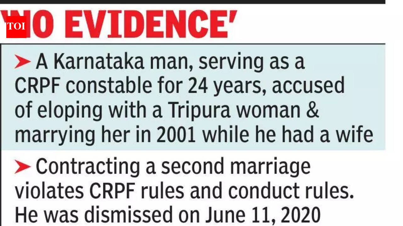 Kolkata: The Calcutta High Court on March 19 reinstated a CRPF personnel from Karnataka, posted in West Midnapore, who was dismissed for allegedly contracting a second marriage, stating his dismissal was purely “on the basis of hearsay and suspicion”. It was observed that continuation of proceedings would cause the personnel not only professional but also personal and emotional hardship.Justice Ajay Kumar Gupta acknowledged that the court did not sit as an appellate authority when exercising judicial review over disciplinary action but could interfere when the findings were “perverse, based on no evidence, or in violation of settled principles of law”.The Karnataka man, serving as a CRPF constable for 24 years, was accused of eloping with a Tripura woman and marrying her in 2001 while he had a wife. Contracting a second marriage violates CRPF rules and conduct rules. He was posted with 165 Battalion, CRPF Tangasole, West Midnapore, when he was dismissed on June 11, 2020. But the constable claimed he had only one wife, whom he married in 1997, and the allegation arose due to mistaken identity and incorrect entries.He appealed before the deputy IGP, CRPF, Range Yalahanka in Bangalore, which was rejected on Sept 29, 2020. A revisional application was rejected on March 5, 2021. He filed a second appeal before a different authority, but that plea was also rejected on Oct 6, 2021. He then moved the Calcutta High Court.The man was also accused of submitting a fraudulent hostel subsidy. As he was already punished for it, the HC said he could not be punished twice for a crime.It was submitted that no criminal proceedings for bigamy were initiated against him. The HC noted while holding the constable guilty of second marriage, the departmental proceedings only relied on hearsay statements and police reports, without any independent corroboration or proof of the essential ingredients of a valid marriage. “Such evidence, in the opinion of this court, falls short even of the standard required in departmental proceedings,” Justice Gupta said.
