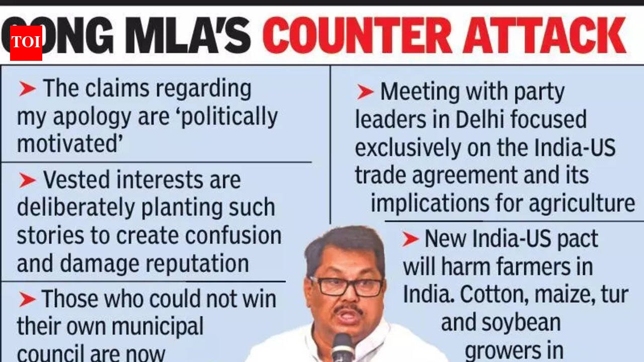 Nagpur: Congress Legislature Party leader Vijay Wadettiwar on Saturday vehemently denied reports that he had apologised in connection with the Chandrapur mayoral loss, terming the claims ‘mischievous and politically motivated’.“I have done nothing wrong. Why should I apologise?” Wadettiwar told the media here and alleged that “vested interests are deliberately planting such stories” to create confusion and damage his reputation.Taking a swipe at his detractors, Wadettiwar said those “who could not win their own municipal council are now questioning others,” suggesting that the reports were an attempt to divert attention from their own political setbacks.The Bramhapuri MLA said the proposed India-US trade agreement will strike at the “very roots” of Indian farmers while announcing a statewide protest in Yavatmal on March 7. Regarding his meeting with party leaders in Delhi, Wadettiwar said discussions focused exclusively on the trade pact and its implications for agriculture. “The new agreement will harm farmers in India. Cotton, maize, tur and soybean growers in Maharashtra will be hit hard,” he said.He alleged that goods imported from the US would attract zero per cent duty, while Indian exports would face a 10% tariff. “This unequal policy will completely devastate farmers,” he said, noting that cotton was currently selling at ₹4,500 per quintal and maize at ₹1,500, while soybean prices had sharply declined.Wadettiwar accused the govt of prioritizing land acquisition for Shaktipeeth highway project over farmers’ concerns and of acting against protesting cultivators. He further alleged that 22,000 schools had shut across Maharashtra and 4,000 were functioning without teachers, claiming there was a deliberate move to close Marathi schools in Mumbai. Raising concerns over incidents in Sinnar and Badlapur, he said law and order had deteriorated and demanded a special investigation team.Referring to Leader of the Opposition in Lok Sabha, Rahul Gandhi, Wadettiwar said legal cases would not deter the Congress from continuing its fight.
