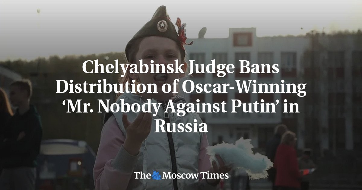 A judge in the Ural Mountains city of Chelyabinsk has banned the Oscar-winning documentary film “Mr. Nobody Against Putin” from being distributed in Russia after prosecutors argued that it negatively portrays the country, the exiled news outlet Mediazona reported Thursday.