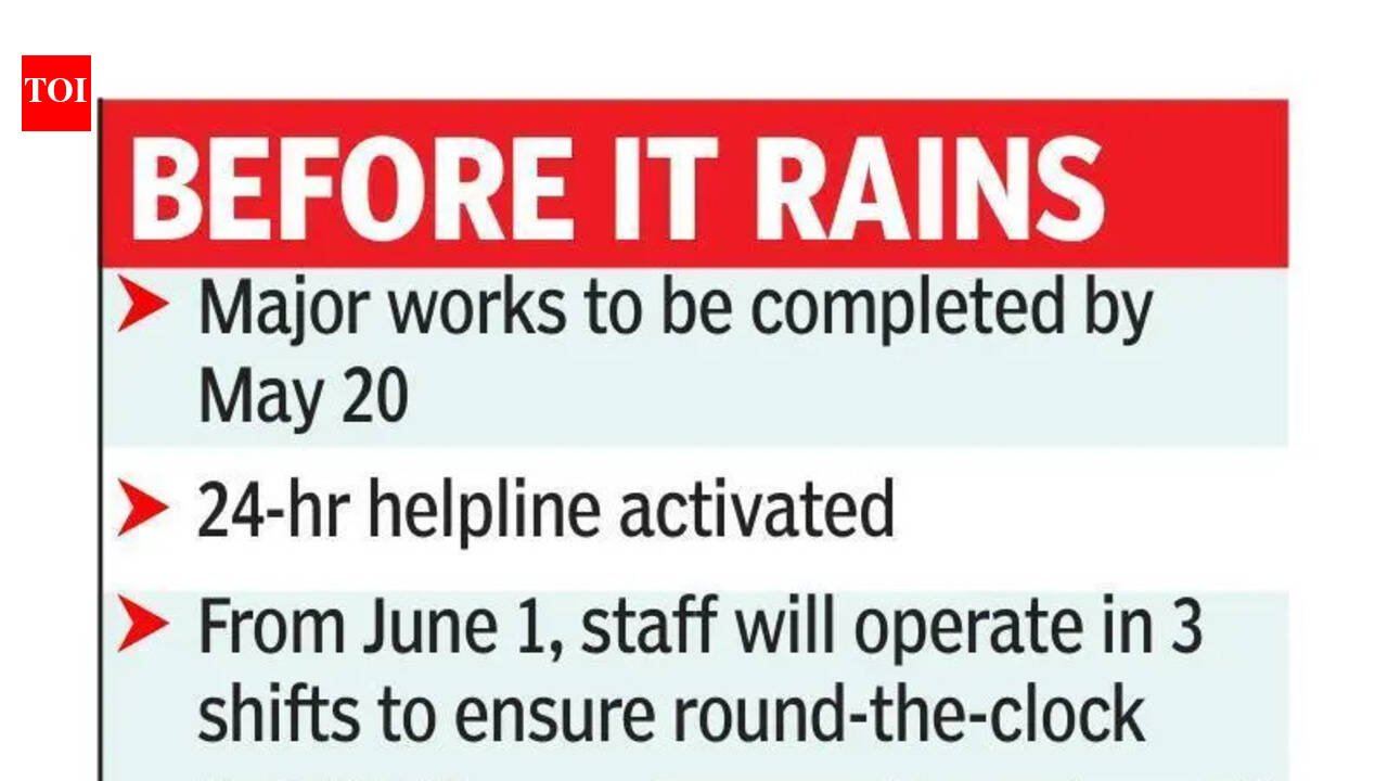 Mangaluru: With the monsoon approaching, the district administration has stepped up preparedness measures, focusing on preventing rain-related damage, strengthening emergency response, and accelerating infrastructure works across the city.DC and administrator of the Mangaluru City Corporation, Darshan HV, said the forest department and Mescom teams have begun reconnaissance surveys to identify potential hazards. Following public complaints about dangerously leaning trees along roads and in public spaces, forest personnel have started surveying such locations and will prune hazardous branches. Mescom will appoint temporary staff, with five personnel deployed under each AEE. These staff members will assist linemen during emergencies. Inspections of streetlights and transformers are also under way. As part of monsoon preparedness, incident commanders have been appointed across all 60 wards within the MCC limits. They will handle emergencies, address public complaints, and manage natural calamities in their respective areas. In addition, gangmen and vehicles will be hired for a period of three months. Each ward will have a five-member team equipped with a vehicle to ensure immediate response during emergencies.On artificial flooding, the DC said low-lying areas like Malemar, Subhashnagar, and Ullal remain vulnerable, as they were historically natural water-flow paths. He added that recent flooding near the Ambedkar Circle bus stop was primarily caused by plastic waste clogging drain meshes.At Pumpwell (Mahaveera Circle), water from five locations converges into stormwater drains. Three major upgradation works, including service road widening and the development of a rajakaluve, are in progress and expected to be completed by May end.Darshan said the one-side road upgradation between Pumpwell Circle and Karavali Junction is likely to be completed by May 20, while work on the opposite side will be taken up after monsoon. Similarly, culvert upgradation on MG Road at Ballalbagh, near the TMA Pai International Convention Centre, will also be undertaken post-monsoon.BOXBefore it rains *Major works scheduled for completion by May 20*24-hour helpline activated*From June 1, staff will operate in 3 shifts to ensure round-the-clock response Source: Mangaluru DC