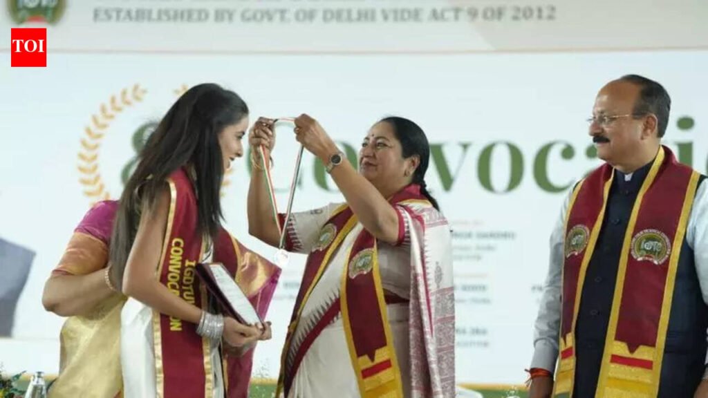 New Delhi: Chief minister Rekha Gupta on Thursday highlighted the concept of woman-led development, stating that women are emerging as leaders across sectors and playing an increasingly important role in shaping the country’s future. Every girl in Delhi should pursue education at least up to the graduation level, Gupta emphasised while addressing the eighth convocation of Indira Gandhi Delhi Technical University for Women.Courage and determination are not defined by gender and women had made remarkable contributions in every field throughout history, she said, highlighting the growing role of women in leadership and nation-building.“Delhi govt remains committed to promoting education, skills, technology and research. When women are empowered through education and skills, it not only transforms their own lives but also drives progress for society and the nation,” CM said.During the ceremony, 1,181 degrees were awarded to graduating students across various programmes, including 938 undergraduate, 212 postgraduate and 31 PhD degrees. In recognition of outstanding academic achievements and leadership, the university also conferred two Chancellor’s Medals, 15 Vice-Chancellor’s Medals and 26 awards for academic excellence.Education minister Ashish Sood, university vice-chancellor Ranjana Jha, faculty members, parents and a large number of students were present. Addressing the students, CM said, “A convocation is not merely the end of academic life but the beginning of a new journey. The 1,181 graduating students are not merely receiving degrees but are stepping out as future leaders who will shape the direction of society and the nation through their knowledge, skills and leadership.“National initiatives such as Digital India, Atmanirbhar Bharat, Startup India and Skill India have opened new avenues for youth in innovation, research and entrepreneurship, Gupta said, adding that the university “is working in alignment with these initiatives and contributing significantly to the vision of women’s empowerment and Viksit Bharat 2047”.Sood said the occasion was also about sending a message to the world that young women today were the builders, innovators and leaders of the future. “The capital is currently being led by a woman who is actively working to strengthen women’s empowerment and create new opportunities for young people. Our country is currently passing through the phase of Amrit Kaal and women’s participation during this period is emerging as one of the country’s greatest strengths,” he said.While women were once discouraged from stepping forward, they are today demonstrating their capabilities and leadership in every field, he added.