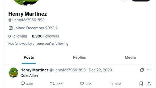 In a tweet shared over two years ago in December 2023, the user merely mentioned the name “Cole Allen,” without any additional context. This tweet stands as the sole entry on that account, which is characterized by a profile picture featuring Pepe the Frog. The precise timing and exactness of the name have left internet users astonished and engaging in rampant speculation.