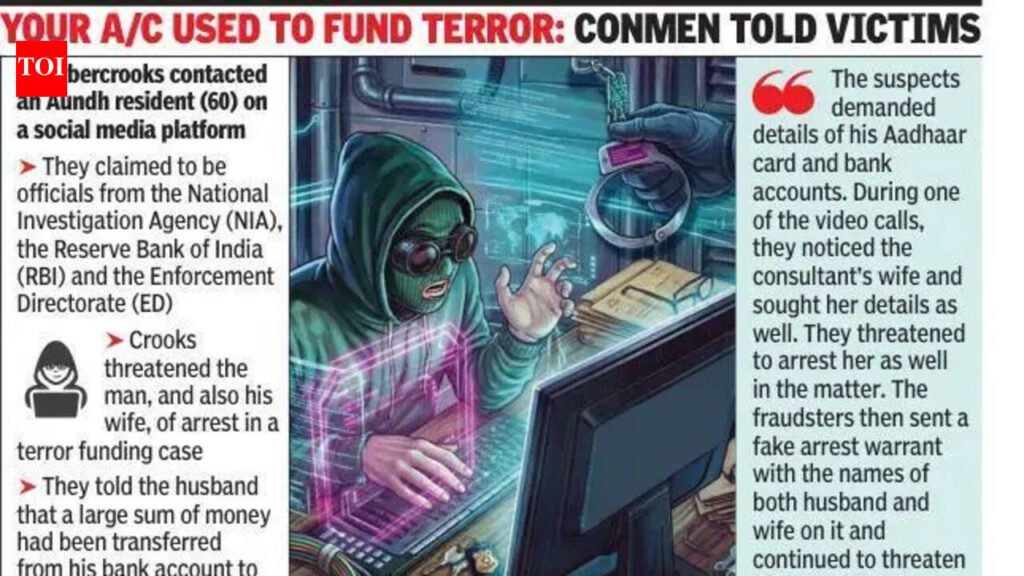 Pune: An Aundh-based consultant (60) with an electrical and pipe manufacturing firm lodged a complaint with the Pune cyber police on Friday, stating that cybercrooks duped him and his wife of Rs 1.18 crore between March 13 and April 22 after threatening to arrest them in a terror funding case.The Pune cyber police registered a case of cheating against the cybercrooks on Friday. The complainant also said that the crooks posed as officials from the National Investigation Agency (NIA), the Reserve Bank of India (RBI) and the Enforcement Directorate (ED).According to the police, the fraudsters contacted the complainant on a messaging application on March 13 and claimed to be the officials from the ED.They told him that a large sum of money had been transferred from his bank account to that of the PFI, a banned organisation in India. They further claimed that the money had been used by terrorists to fund activities in the country, the police added.The fraudsters then informed the consultant that the case was also being probed by the NIA and RBI, alleging that funds had been laundered for terrorist activities.Swapnali Shinde, senior inspector of Pune cyber police, told TOI, “Subsequently, the suspects demanded details of his Aadhaar card and bank accounts. During one of the video calls, they noticed the consultant’s wife and sought her details as well. They threatened to arrest her as well in the matter.”“The fraudsters then sent a fake arrest warrant with the names of both husband and wife on it and continued to threaten them with arrest. They claimed that the arrest would bring bad name for the family,” Shinde said.According to the FIR, the fraudsters then promised to settle the charges against the couple in exchange for money. The consultant subsequently transferred Rs 1.18 crore to seven bank accounts operated by the fraudsters.