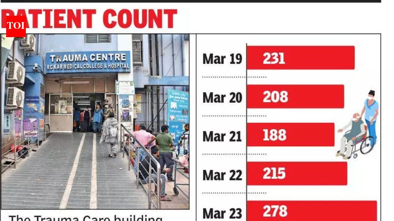Kolkata: The patient footfall at RG Kar Medical College’s Emergency unit nosedived on Tuesday. The unit usually sees an average footfall of 200 patients daily but on Tuesday, it halved to around 100 patients. While officials claimed that such ups and downs in emergency patient count happen, a section of doctors apprehend that this could be a direct fallout of the two recent deaths, especially the one on Monday where a gasping patient had to walk 40 metres and climb a flight of stairs to avail washroom facilities.According to hospital records, on Thursday, the Emergency recorded a footfall of 231 patients. The next day, a killer lift crushed Arup Banerjee to death in the Trauma Care building. The 40-year-old had come to the hospital with his three-year-old son, who sustained an arm injury. He, along with his son and wife, got trapped in the lift. While the mother and the kid managed to survive, the father died in the freak accident. On that day, the Emergency unit recorded a footfall of 208.On Saturday, the patient count dipped to 188. But the next day, it went up to 215 and further to 278 on Monday, the day Biswajit Samanta collapsed to death at the pay-and-use toilet door. It further dipped to 98 on Tuesday.“I am staying on the hospital premises for about eight days as my nephew is admitted in the Trauma Care building for accident-related multiple injuries. While the surroundings of the building are always bustling with patients’ relatives, today it looks quiet,” said Abdul Hossain Sardar, a Kamalpur resident.Among the few who turned up on Tuesday was Shibu Singh from Nadia, who came for the treatment of his 12-year-old son, who sustained a hand injury. “I was a bit scared to come here after hearing about the two deaths. But I am relieved that my son is getting good medical care,” said Singh.Patients’ relatives breathed a sigh of relief that both the functional lifts now have operators. “The doctors are providing good service. But the emergency unit lacks space and facilities, including something basic like a patient toilet that led to the death of a patient,” said a patient’s relative.