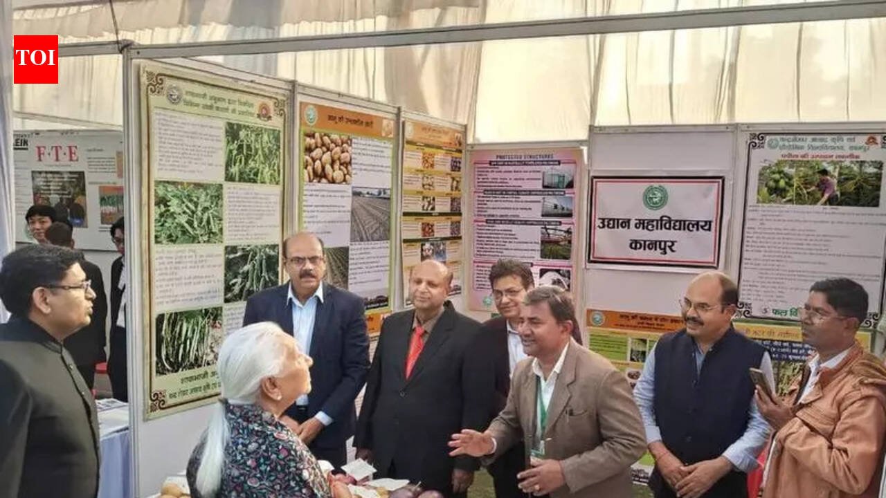 Kanpur: Under the direction of K Vijayendra Pandiyan, vice-chancellor of Chandra Shekhar Azad University of Agriculture and Technology, Kanpur, the university’s vegetable section, Horticulture College, displayed vegetable varieties and technologies developed by the university at the ongoing 57th Regional Fruit, Vegetable and Flower Exhibition at Raj Bhawan, Lucknow.The university’s director research, Mahak Singh and director extension, RK Yadav, jointly stated that cherry tomatoes grown through the hydroponic method at the university were appreciated. They also explained in detail the ‘Increase Organic Matter in Soil Resolution Campaign 2026′ being conducted in 30 adopted villages in districts under the university’s work area. The stall was also appreciated by Governor Anandiben Patel and state’s Horticulture and Food Processing minister, Dinesh Pratap Singh.