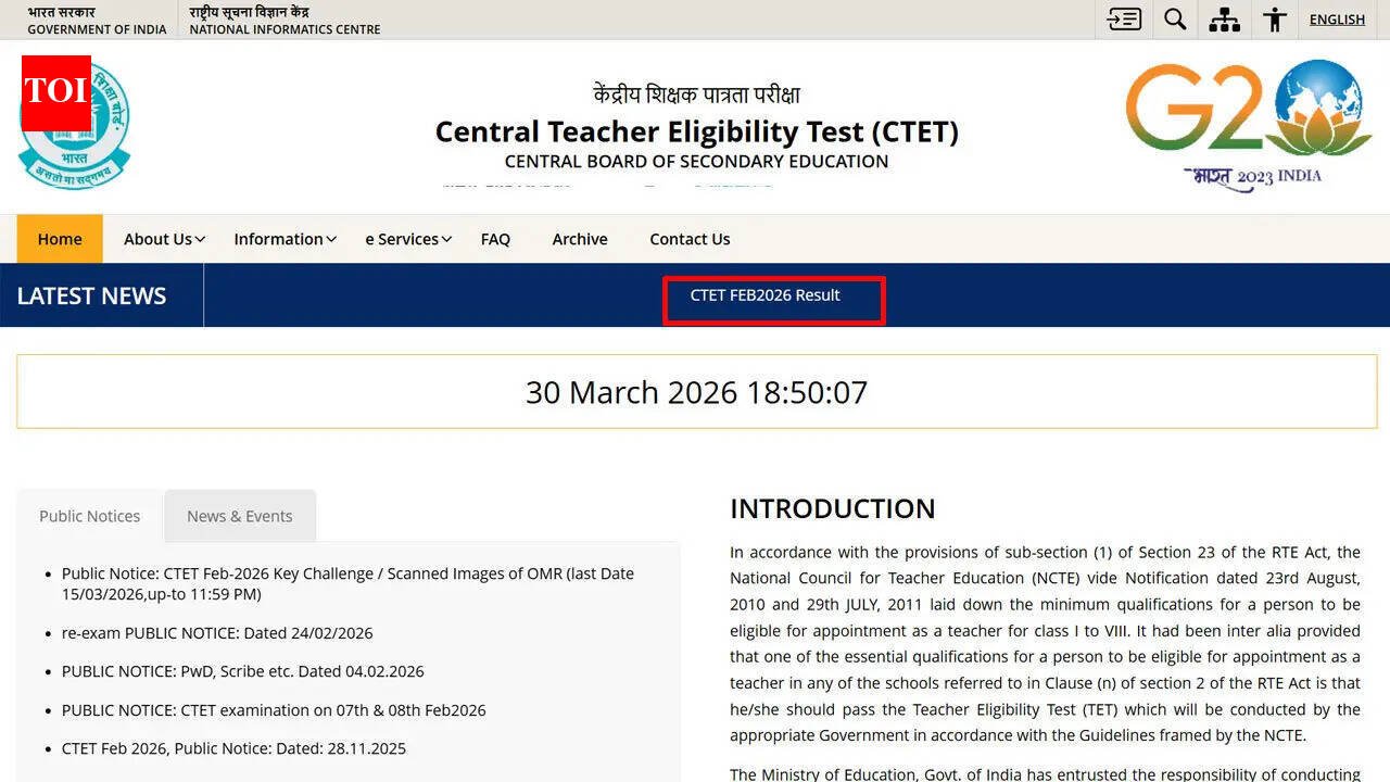 CTET result 2026: The Central Board of Secondary Education (CBSE) has declared the CTET Result 2026 on its official website, ctet.nic.in. Candidates who appeared in the Central Teacher Eligibility Test can now check and download their scorecards using their roll number and date of birth.The result has been released after the completion of the answer key review process. The board had earlier displayed the scanned OMR sheets and provisional answer key and invited objections from candidates before finalising the scores.Answer key process completed before result declarationCBSE had uploaded the scanned OMR answer sheets and provisional answer keys on March 12, 2026. Candidates were allowed to raise objections till March 15, 2026 by paying a fee of Rs 1,000 per question. The board reviewed all the challenges submitted within the deadline through subject experts.Based on the evaluation of these objections, the final answer key was prepared. The CTET result has been calculated strictly on the basis of this revised answer key, and no further changes will be made.Over 2.5 million candidates appeared in February examThe CTET 2026 examination was conducted on February 7 and 8 across the country. More than 2.5 million candidates had registered for the test, making it one of the largest eligibility examinations for teaching roles.The exam was held for two papers. In Paper 1, the exam was held for candidates who wish to teach Classes 1 to 5. In Paper 2, the exam was held for candidates who wish to teach Classes 6 to 8.