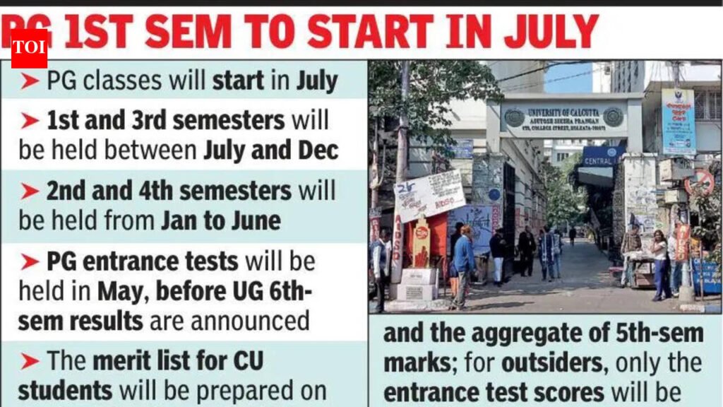 Kolkata: Calcutta University syndicate, the highest decision-making body, has approved a new postgraduate academic calendar—July to June—aligning it with the national academic schedule. The new schedule will be implemented from the upcoming session.CU has never had an academic calendar for PG courses, as a result of which there has been no structured beginning of an academic session or exam schedule. To address this problem, CU formed a committee that prepared the calendar, earmarking major dates, such as the start of a session, exam timetables and the date for the end of each semester. The new calendar specifies that all PG classes will begin in July, the first semester will end in Dec, and the next semesters’ classes will be held between Jan and June. Tentative exam dates have been fixed, indicating that all PG departments on CU campuses as well as in affiliated colleges will start and end sessions at a specific time.In the absence of a calendar so far, an academic session would always start late in CU PG departments, said a teacher, pointing out that the beginning of first-semester PG classes would usually depend on the decisions of boards of studies of respective departments, leading to a disparity among subjects. A CU official said, “We had an academic calendar for undergraduate courses, but none for PG. From the new academic session, students will be offered multiple PG programmes, for which we need to follow a certain calendar.” University professors welcomed the decision. Sanatan Chottopadhyay, president of Calcutta University Teachers’ Association, said, “Uniform academic practices is our long-standing demand. We thank the authorities that we can implement it. It will improve the quality of the academic process.” Siuli Sarkar, principal of Lady Brabourne College, which runs 10 PG courses, said, “With a PG calendar in place, we don’t have to depend on subject-specific board of studies to start academic practices. The structured schedule will help students.”Several professors pointed out that in the absence of a calendar PG admissions continued till Dec though a parity with the national level demanded the completion of the first semester by then. They also said there was no uniformity in holding first-semester exams, with one department conducting them in March and another in April. A science faculty member said, “We cannot refuse students admissions because filling seats is important. But admissions running up to Dec hampers the academic process as a student needs at least three months’ classes to take first-semester exams. This delays the schedule.”CU has also decided to hold PG entrance tests in May, before the UG sixth-semester results are announced.