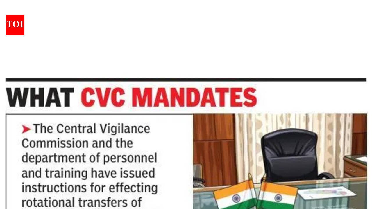 Chandigarh: While the tenure of senior officers in the UT administration is typically capped at three years, many officials lower down the hierarchy continue to occupy sensitive posts well beyond the Central Vigilance Commission (CVC)-mandated limit. Several PCS, HCS and UT cadre officers have remained in such positions across different administrative levels for extended periods, raising concerns over adherence to vigilance norms.Alarmed by the situation, the chief secretary-cum-chief vigilance officer (CVO) recently directed all administrative secretaries and heads of depts to ensure that officials posted in sensitive positions are not retained for more than three years. The CVO has also sought details from all depts on officials who have continued in the same post beyond the prescribed tenure.Earlier, in Dec last year, the chief secretary had reiterated these directions in a high-level meeting of secretaries, directing all depts “to certify that officer rotations are being carried out in accordance with prescribed guidelines—three years for sensitive posts and five years for non-sensitive posts—and that disciplinary proceedings and suspension cases are reviewed and completed within the stipulated timelines. These certificates are to be approved by the concerned secretaries.”RK Garg, city-based social activist, who is taking up the issue with the administration, said, “Several key posts are being manned by the officials on deputation and from the UT cadre for several years without any rotation. Posts at director level, and public dealing continue to be manned by the same officials for more than three years. The administration also keeps mum on the posts declared as ‘sensitive’. There should be more transparency in the administration on such key policy implementation matters.“Vineet Gulati, a city resident who has taken up the issue with the administration under the Right to Information Act, said, “CVC rules exist to prevent exactly a situation where the officials occupy sensitive posts. The commission explicitly warns that overstay and continuous posting afford scope for indulging in corrupt activities and developing vested interests. In UT administration, though, there are instances where the same official is occupying a post for more than a decade.” Under Central Vigilance Commission (CVC) guidelines, a “sensitive post” is one where an official has frequent public dealing, handles regulatory functions, or exercises discretionary powers that could lead to corrupt practices if left unchecked. Such posts must be identified, and occupants rotated every two to three years to prevent “development of vested interests.”BOX: WHAT CVC MANDATES Central Vigilance Commission and the department of personnel and training have issued instructions for effecting rotational transfers of officials posted on sensitive posts. As per commission’s instructions issued vide letter Nos. 98/VGL/60 dated 15.04.1999, 02.11.2001 and 004/VGL/90 dated 01.05.2008 and 04.01.2012 (for public sector banks) on this issue, it was prescribed that ministries/depts/organisations and CVOs are to identify the sensitive posts and staff working in these posts and also ensure that they are strictly rotated after every two/three years to avoid developing vested interestsThe commission has observed that such overstay and continuous posting afford scope for indulging in corrupt activities, developing vested interests etc, which may not be in the interest of the organisationThe commission has emphasised that periodical rotation of officials holding sensitive posts/jobs needs to be ensured. As such, officials should not be retained in the same place/position for long by the ministries/depts/PSUs/banks/organisations etc