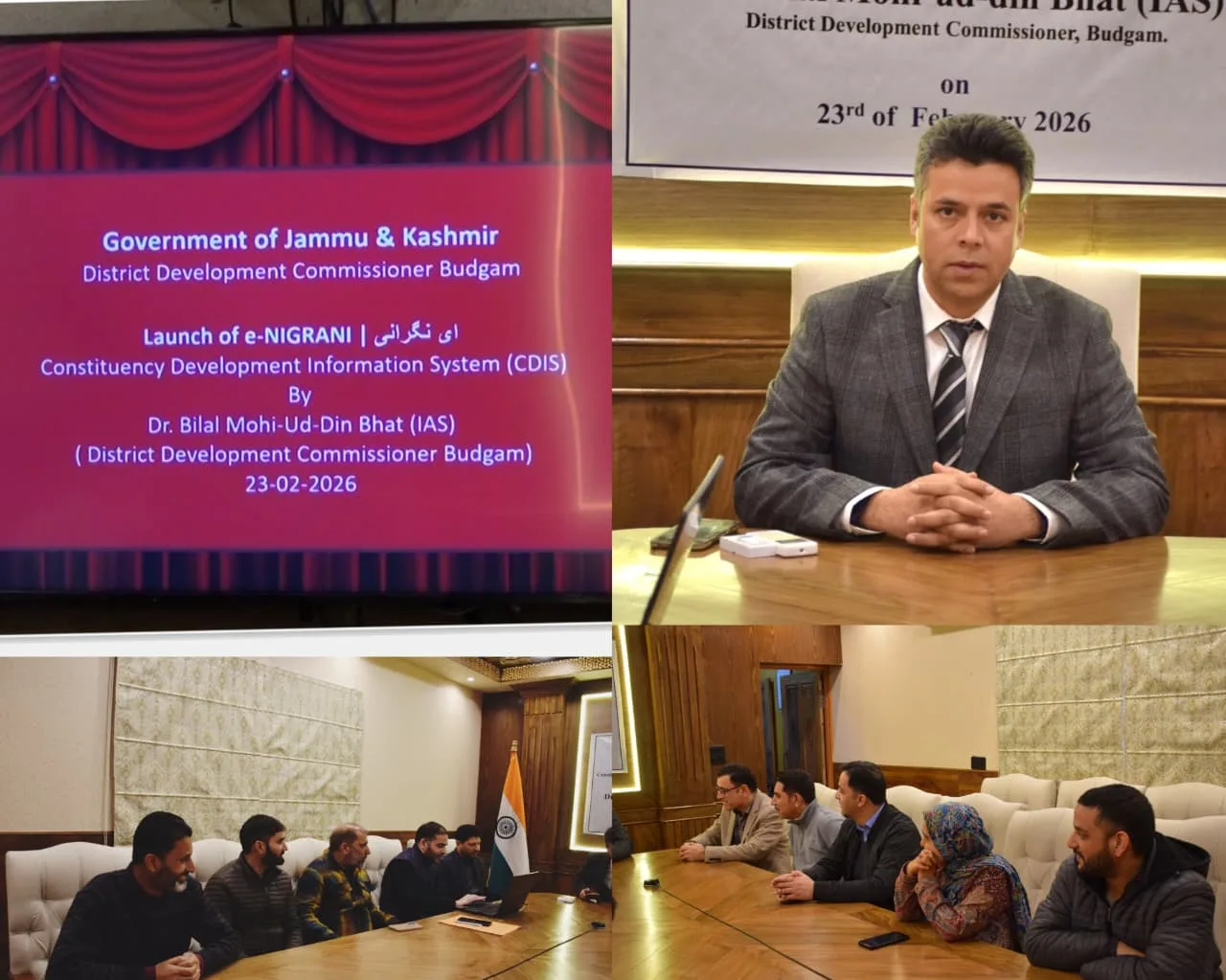 Budgam, Feb 23: Deputy Commissioner (DC) Budgam, Dr. Bilal Mohi-Ud-Din Bhat, on Monday launched the ‘e-Nigrani App’, a Constituency Development Management Information System (CDMIS), developed for effective management and real-time monitoring of development projects across the Assembly Constituencies of District Budgam.