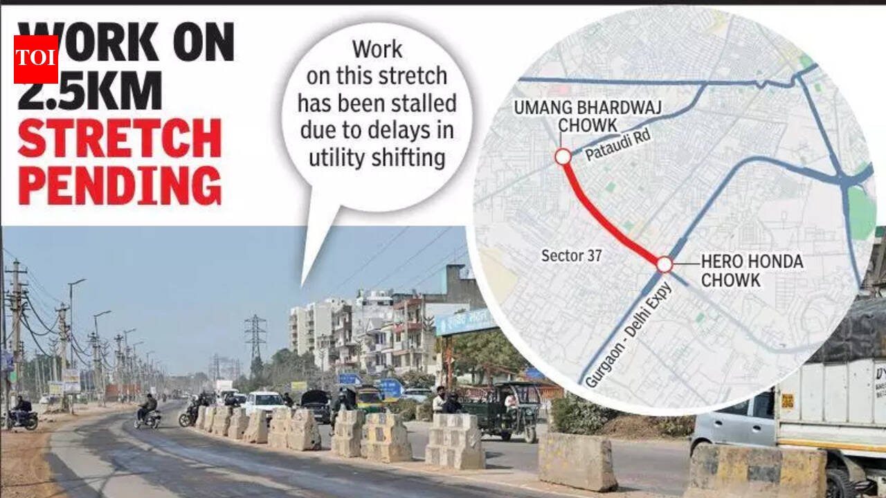 Gurgaon: Construction on a 2.5km stretch of the new metro corridor between Umang Bhardwaj Chowk and Hero Honda Chowk has stalled due to delay in right of way (RoW) clearance and shifting utilities.The section is undergoing road redevelopment by NHAI, funded by GMDA, and forms part of the metro project’s phase 1. A senior GMRL official said work cannot move forward until the land is cleared.The problem was reviewed in a meeting on Friday involving GMRL, NHAI, and GMDA. GMRL officials said the land needed for construction has not been cleared and asked NHAI to share a firm timeline for RoW clearance and utility relocation so work can begin on the stretch.Multiple underground and overhead utilities, including water pipelines, sewer lines, and power lines, run along the corridor. In addition, a shop, a portion of Himgiri Ashram, and a CNG station fall in the metro corridor’s alignment, further constraining space for construction.Metro officials said although metro infrastructure needs a limited working area, the spread of utility networks across the stretch makes relocation necessary before construction can start.An NHAI official said progress depends on Dakshin Haryana Bijli Vitran Nigam (DHBVN) shifting power infrastructure before key utility work can proceed.“We have an interdependency on DHBVN for shifting of power poles along the stretch, particularly on the left-hand side. Until those poles are relocated, we cannot begin work on the water pipeline. Similarly, the sewer line work on the left-hand side is also held up due to this dependency. Once DHBVN completes its portion and the site is cleared, we will begin water and sewer line works, which we aim to complete within 3 months,” the official said.The official added that relocation linked to Haryana Vidyut Prasaran Nigam Limited (HVPNL) substation is underway and will be completed by June.“We are also planning to begin demolition of the boundary wall at Himgiri Ashram within the next 10 days,” the official said.The delay has created a bottleneck in phase 1 of the 15.3km corridor connecting Millennium City Centre to Sector 9. While pile cap work and other foundational activities are progressing in other sections, the lack of clear RoW in this stretch continues to hold up construction.In August last year, Dilip Buildcon and Ranjit Buildcon were awarded the phase 1 construction contract for Rs 1,277 crore, with a completion timeline of 30 months.