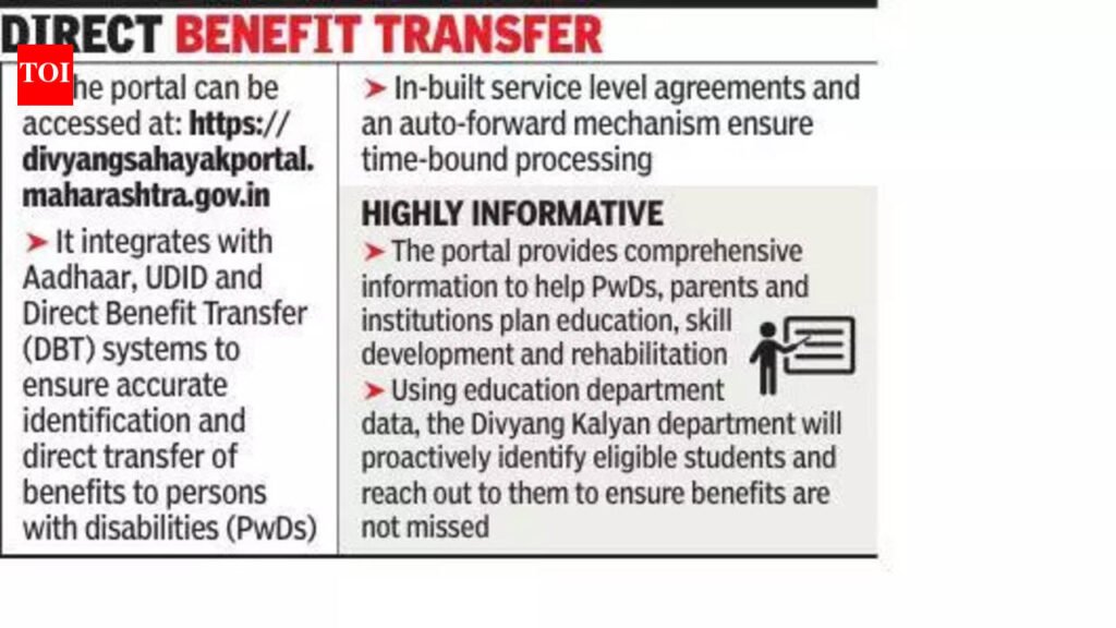Pune: Chief minister Devendra Fadnavis on Sunday launched the Divyang Sahayak Portal — an integrated, AI-enabled platform of the Maharashtra Divyang Kalyan department — to streamline welfare delivery to persons with disabilities.The portal enables beneficiaries to apply for schemes online from home and track applications in real time. Information about all schemes for persons with disabilities (PwDs) has been consolidated on a single platform, scuttling the need to visit multiple offices.“The Divyang Sahayak Portal will help accelerate digital empowerment of PwDs and make service delivery simple and transparent,” Fadnavis said.Divyang Kalyan secretary Tukaram Mundhe told TOI, “This is the one-stop website for availing anything under this department. It will help weed out middlemen and ensure there is proper tracking of benefits given.” Highlighting the technological integration, he said, “The use of Artificial Intelligence (AI) through an integrated portal is a major step towards the empowerment of PwDs. Services will now be available at their fingertips or through voice notes. The initiative will enhance transparency and accountability, and build trust among all stakeholders. All services, schemes and benefits will be accessible through a single portal, eliminating the need to visit offices or meet officials in person.“While the Census estimates around 29 lakh Divyangs in Maharashtra, about 14 lakh are currently registered with the department.Officials said general administrative procedures had been simplified through Business Process Re-engineering (BPR). A three-tier workflow has been introduced. PwDs must first create a profile. Then eligible schemes are displayed. Approval levels have been capped at three to reduce delays.