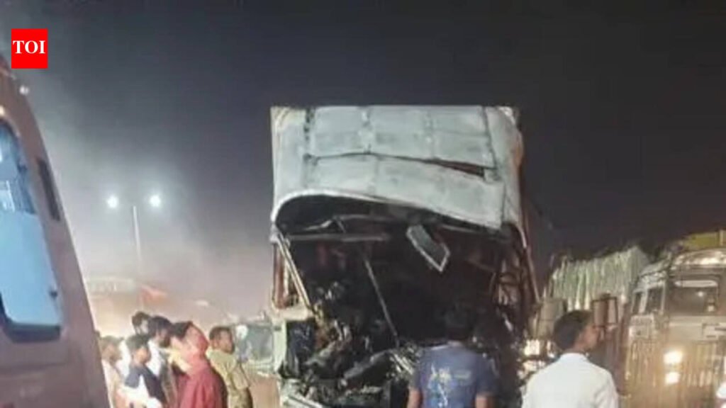 Nagpur: A speeding container truck rammed into an empty trailer from behind and burst into flames near Mohda on National Highway 53 late Friday night, killing the driver.Police identified the deceased as Sanjay Bind, a resident of Uttar Pradesh, who was charred to death in the crash around 10.30pm. His cousin, Sujit, who was travelling as a cleaner, sustained nearly 40% burns but was rescued by passers-by and rushed to a hospital in Bhandara. He was later referred to Government Medical College and Hospital in Nagpur.The truck, carrying chips and namkeen from an international food company in Nagpur, was headed towards Raipur at the time of the accident.Eyewitnesses said the impact left the cabin completely mangled, trapping Bind between the steering wheel and the crushed metal. A fire broke out almost instantly, engulfing the front portion of the vehicle. Despite attempts by bystanders, he could not be saved.According to Mouda police, the truck had left the company premises around 5pm and halted en route for a meal, during which the driver allegedly consumed liquor. Police are also examining whether the trailer driver violated traffic norms. Preliminary investigations suggest that oil leakage from the damaged engine may have triggered the blaze. The charred vehicle has been seized for forensic examination, while statements from eyewitnesses and the injured helper are being recorded to reconstruct the sequence of events.The NH-53 stretch has seen multiple accidents in recent years, attributed to heavy truck traffic, inadequate lighting, and overspeeding.