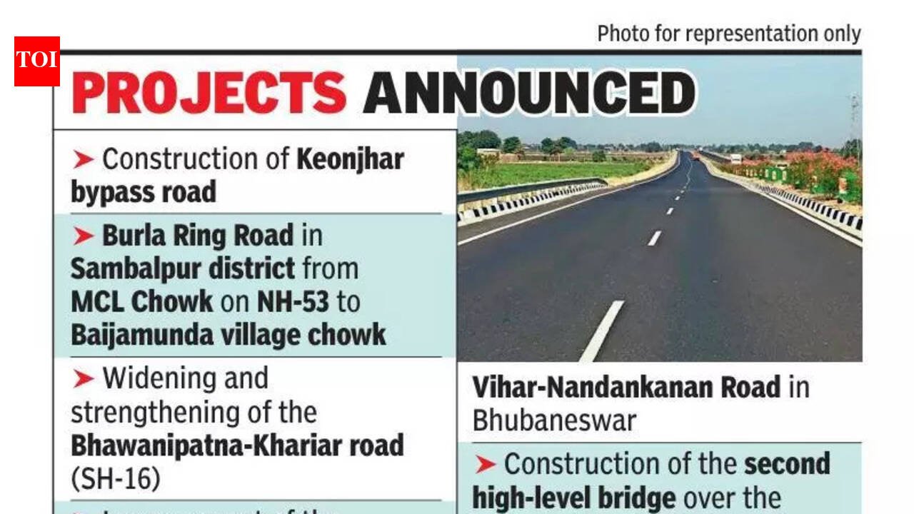 Bhubaneswar: Road connectivity between the state’s east and west and north and south are set for a major upgrade with three mega projects announced in the state budget on Friday. Along with the coastal highway, Bhubaneswar bypass and ongoing rail projects like the Khurda Road-Balangir new line, the state’s connectivity map is headed for an overhaul.The projects announced in the budget are the 287km-long Berhampur-Jeypore road at a cost of Rs 9,000 crore, NaMo Expressway from Paralakhemundi to Ambabhona, and the 969-km Atal Expressway from Motu to Tiringi. “We will build world class infrastructure for our future generation,” said chief minister Mohan Charan Majhi in his budget speech.The first project will connect the southern town of Jeypore in Koraput district with the coastal city of Berhampur in Ganjam. The budget proposal stated that the 400-km NaMo Expressway will connect Paralakhemundi in Gajapati district to Ambabhona in Bargarh district as part of the East-West Corridor, at an estimated cost of around Rs 7,000 crore.The Atal Expressway will connect nine districts between Motu in Malkanagiri district and Tiringi in Mayurbhanj district as part of the North-South Corridor. The estimated cost of the project is around Rs 15,000 crore, official sources said. In Odisha, more than 50 national highway projects are underway at an investment of over Rs 21,000 crore. Besides, the Union Budget this year sanctioned new roads and improvements to national highways of about 400 km in the state, at an estimated cost of over Rs 15,000 crore. The proposed six-lane access-controlled greenfield Capital Region Ring Road, also known as the Bhubaneswar Bypass, starting from Rameswar (NH-16) in Khurda district to Tangi in Cuttack (110.8km-long), will connect rural and urban centres of Khurda, Dhenkanal and Cuttack districts. The estimated cost of the project is Rs 8,307 crore. It will be built in three packages: Rameswar to Bilipada (40.2 km), Bilipada to Gobindpur (30.3 km) and Gobindpur to Tangi (40.3 km). For upgrade of state highways and major district roads to standard specifications, construction of major bridges, and smooth traffic flow in urban areas, state govt proposed an amount of Rs 7,500 crore under the Road Development Programme. The Union Budget announced several Odisha-specific initiatives, with a record Rs 10,928 crore allocation for railway projects to strengthen connectivity, support ongoing infrastructure works, and boost industrial growth. The East-West freight corridor passing through the state will improve logistics and link industrial clusters with major markets. Railway works worth over Rs 90,659 crore are currently in progress in the state.The Khurda Road-Balangir new line, one of the 40 projects underway, will bridge the east-west divide once it is commissioned by end of this year.