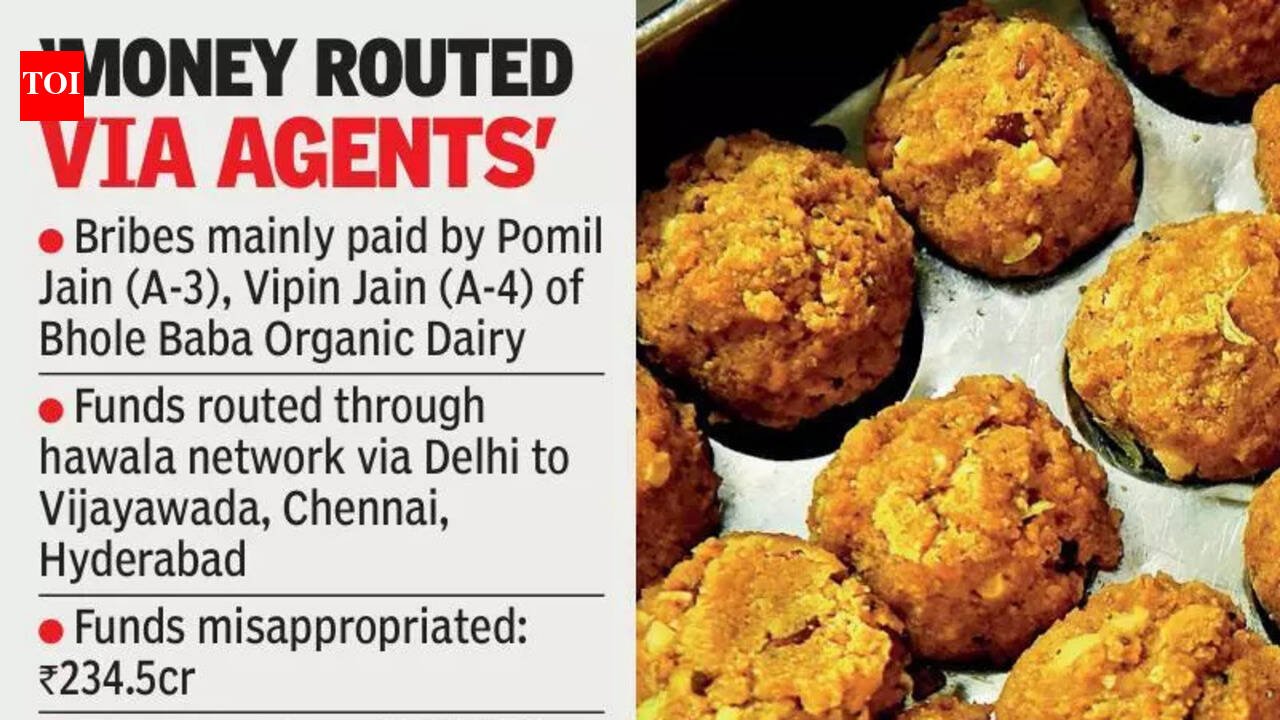 Hyderabad: Enforcement Directorate has initiated a probe under the Prevention of Money Laundering Act into the Tirupati laddu adulteration case, registering an Enforcement Case Information Report against the accused and launching a formal probe, ED sources said.According to the special investigation team’s (SIT) supplementary chargesheet, the case revolves around alleged hawala-based cash transactions and illegal gratification paid by private dairy firms and intermediaries to Tirumala Tirupati Devasthanams (TTD) officials to influence ghee tenders and quality clearances. Forensic examination of mobile phones, WhatsApp chats and Excel sheets is stated to have revealed documented payments to the then general manager (procurement), TTD, and smaller sums to other officials, routed through cash couriers and hawala operators. The SIT alleges a criminal conspiracy between directors of various dairies and TTD officials to supply adulterated and ‘noxious’ ghee for the preparation of sacred prasadams. Ineligible dairies are accused of submitting forged documents, including experience certificates, FSSAI returns and lab reports, to secure tenders by quoting unviable low rates. Public servants allegedly ignored discrepancies in return for bribes and issued favourable plant inspection reports.CFTRI report suppressedThe chargesheet further states that suppliers used monoglycerides, lactic acid and refined oils — palm, palm kernel and palmolein — to mimic pure cow ghee. It also alleges that Central Food Technological Research Institute, Mysuru, test reports confirming adulteration (Beta Sitosterol-positive) were deliberately suppressed by TTD officials to allow continued supply. The supplementary chargesheet names several recipients of alleged bribes. Kaduru Chinnappanna (accused-24), PA to the then TTD chairman, is accused of receiving 50 lakh in cash and demanding 25 per kg from a supplier. RSSVR Subrahmanyam (A-29), then GM (procurement), allegedly received 3.5 lakh in cash, a Samsung Galaxy S-20 phone worth 50,000 and a silver coin. Maddi Vijayabhasker Reddy (A-34), a dairy expert, is accused of taking 7.5 lakh for inspections, a Kundan gold coin and 75 lakh through hawala. The SIT alleges that Apurva Chavda (A-5), CEO of Sri Vyshnavi Dairy, received 19.86 crore through hawala channels. Smaller alleged payments to TTD staff and probe panel members are also listed, along with gifts.Routing thru agentsAccording to the SIT, bribes were mainly paid by Pomil Jain (A-3) and Vipin Jain (A-4) of Bhole Baba Organic Dairy, with funds routed through commission agents. The money trail, the chargesheet states, involved ‘round-tripping’ and a hawala network moving funds from Delhi hawala shops to agents in Vijayawada (Bharat Bhai Thakur), Chennai (Madaram Dewasi), and Hyderabad (Arjun Goswami), allegedly using a token-based currency verification system.The SIT claims that 59,71,781 kg of adulterated ghee was supplied and Rs 234.51 crore misappropriated. It also alleges diversion of profits through high salaries, construction of a luxury house for Pomil Jain and purchase of commercial plots.On adulteration, the chargesheet states the ghee was largely vegetable-fat based, noting that subsequent tests by National Dairy Development Board’s Centre of Analysis and Learning in Livestock and Food, and National Dairy Research Institute, Karnal, did not detect specific animal fats such as lard or tallow.
